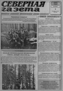 Основана в июне 1935 года Год молодежи ПОЗАДИ РЕГИОНАЛЬНАЯ ПРОФИЛЬНАЯ СМЕНА «ЮНЫЙ СПАСАТЕЛЬ». Но у ребят и их руководителя Н. П. Никитина осталась масса самых приятных воспоминаний о том, что пришлось преодолеть. Испытания обязательно поднимают соревновательный дух, и нашей команде пришлось приложить немало усилий, чтобы доказать, что в соревнованиях они тоже могут побеждать. Кому, например, из молодых не хочется быть всегда впереди, выглядеть перед своими сверстниками настоящим героем? А для этого необходимо много работать и морально, и физически. Подобного рода мероприятия помогают целеустремленным юношам и девушкам формировать характер, испытывать на прочность силу воли и, конечно же, дают возможность общаться с прежними друзьями и знакомиться с новыми. Уважаемые северяне! Приглашаем вас в Культурно-досуговый центр 25 июля в 12.00 часов на окружной смотр-конкурс творческих коллективов Доволенского, Убинского и Северного районов на Призы депутата областного Совета Морозова Александра Владимировича. ОРГКОМИТЕТ СМОТРА-КОНКУРСА. г — Летний отдых В санаториях «Изумруд» и «Юбилейный» на сегодняшний день отдыхают четверо подростков из Северного района. В прошлом месяце в детских оздоровительных лагерях побывали 24 ребенка. Граждане льготной категории, пенсионеры и инвалиды в июне не ездили в санатории, несколько путевок для них запланировано на июль и август. Подготовка к учебному году На четыре миллиона четыреста одну тысячу восемьсот рублей, выделенных в рамках реализации комплексного проекта модернизации образования, было приобретено столовое оборудование, мебель, компьютерная техника, учебные кабинеты . Также деньги пошли на установку, модернизацию автоматических противопожарных систем и на повышение квалификации руководителей, педагогов общеобразовательных учреждений района. Нужно успеть В Верх-Красноярке началась подготовка к отопительному сезону. За ремонт котельной взялась бригада рабочих муниципального унитарного предприятия. Чуть позже они приступят к укреплению трубы и ремонту теплотрассы. За лето надо успеть многое сделать. «Муравейнику» - 15 лет Детская библиотека в райцентре регулярно проводит выставки детских журналов. Как-то делали выставку в честь 85-летия «Мурзилки» - вот это дата для издания, которое воспитало ни одно поколение! А журнал «Муравейник» по сравнению с ним еще подросток, в этом году ему исполнилось 15 лет. Но сегодня, учитывая массовость разнообразных детско-юношеских изданий , это тоже немало, так посчитали сотрудники детской библиотеки и оформили выставку. Тем более что журнал интересный, красочно иллюстрированный. В нем есть и поэзия о природе, и много статей, основанной на научных данных, так что дети с удовольствием его читают. Консультировать будет машина Службой занятости населения Северного района приобретен информационный киоск. Это оборудование позволяет ознакомиться с рынком труда, как нашего района, так и всей Новосибирской области. С помощью информационного киоска можно узнать, какие организации подали вакансии, когда, какова зарплата, также ознакомиться с законом о занятости или найти ответы по вопросам профессионального обучения. В общем, можно получить всю ту информацию, которую в состоянии дать специалист центра занятости. Внимание профилактике Состоялась очер