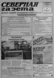 \с ДНЕМ СОГЛАСИЯ И ПРИМИРЕНИЯ!/ т ш т ш ш ш УВАЖАЕМЫЕ СЕВЕРЯНЕ! ДОРОГИЕ ЗЕМЛЯКИ! Сер5ечно поаОравляем вас с Днем согласия ипримирения! Мы люди разных поколений, разных профессиональных интересов и жизненных устремлений, но мы единый российский народ, которому не безразлично будущее нашей страны. Поэтому сообща, объединив усилия, проявляя уважение друг к другу, мы сможем преумножить величие и славу нашего государства. На территории Северного района многие годы проживают рядом люди разных национальностей, но за всю свою историю у нас не было межнациональных распрей и конфликтов. Мы все живем здесь крепкой, сплоченной семьей, уважая традиции и обычаи своего и других народов. А это значит, что у нас есть будущее, поскольку мир и согласие во все времена остаются непреходящими ценностями. С праздником, дорогие земляки! Пусть будут крепкими ваши семьи, жизнерадостными и веселыми ваши дети, теплыми и уютными ваши дома. Успехов вам, любви и счастья. С уважением, Председатель Совета депутатов Глава Северного района Северного района Новосибирской области Новосибирской области В.Г.ИВАШКЕВИЧ И.В.ЗВЫКОВ & © ш ш С днем рождения комсомола! Дорогие друзья! 29 октября для многих поколений остается одним из самых замечательных Д^ей, ведь это - день рождения комсомола. Связав свою жизнь с этой организацией, мы отождествляли себя со всем лучшим, что было в нашей жизни тогда: молодостью, красотой, здоровьем и бурной энергией. Комсомол воспитывал в нас ответственность идавал чувство нужности людям, дарил возможность реализовать самые смелые проекты. Нельзя вернуть те годы, но прекрасные воспоминания ежегодно собирают нас в этот день. Дорогие комсомольцы всех поколений! Поздравляем Вас с днем рождения комсомола! Желаем Вам еще долгие годы сохранять задор, неравнодушие и желание творить добрые дела! Здоровья и успехов Вам! Клуб "29 о ктября" . Редакция газеты "Северная газета" совместно с почтовым отделением с. Северное провела традиционную подписную акцию с беспроигрышной лотереей, в которой мог участвовать каждый потенциальный подписчик. А их оказалось немало: более 200 человек в этот день подписались на районную газету на следующее полугодие. А главный приз, микроволновую печь, выиграла в этот раз В.М. Тарасенко. О. ФЕДОРОВА. На снимке: В.М. Тарасенко. \ День подписчика"^ Традиционная акция Объявляю благодарность... Уважаемые руководители организаций, главы поселений, предприниматели, молодежь и дети, общественность, все, кто принял участие в проведении декады для пожилых людей Северного района в 2009 году! Выражаю вам искреннюю благодарность за проявленную чуткость и внимание к нашим старшим товарищам! Рассчитываю и в дальнейшем на Ваше понимание и содействие в решении социальных вопросов в Северном районе. Глава Северного района Новосибирской области В. Г. ИВАШКЕВИЧ. Юьентя0Р* 2009 года ЧЕТВЕРГ^ Основ*«» в:июне 1935 год* 1 Ресурсный «еитР 1 »*•• ' ,0Д ,'СЛ.Я*« I **.«»*»»* Заготовка сена I Н*«*»л*‘ Ггод молодежи V - ШбВЗЗ Ш03Е3023Е Материальная помощь КО Дню пожилог^че^ов сиенца * „ „о т е л е й вкпК>чвим з5 пет лг* В слнски папуле™* <оу.«о*ой с * * * * * * * * пиИ. „ ,«• ап ’’■«г имеют*« -Р¥« _ мутовЫ* ЧЧ**** п* сиил»,п,иУ , «^надвое*«чи' Уважаемые читатели! Продолжается подписка на ’’Северную газету” на первое полугодие 2010 года Цена ’’Северной газеты” на полугодие составляет 160 рублей 02 