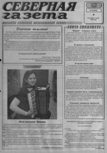 & ш & Т>орогие земляки! Этот год - один из самых сложных для всех аграриев нашей области. Такой погоды наша новосибирская земля не знала уже около 100 лет. В этом году не работали прогнозы, традиции, приметы. Мы не знали, когда созреет зерно, когда кончаться дожди, успеем ли мы убрать урожай до наступления холодов. Но соблюдение всех технологий, бесперебойная работа новой мощной техники, взаимопомощь хозяйств позволили нам добиться рекордного урожая. Впервые за всю историю нашего региона мы перешагнули рубеж в 3 миллиона 900 тысяч тонн валового сбора зерна. Хочу выразить вам признательность за то, что вы смогли вырастить, собрать и сохранить этот урожай. * Р Р Поздравляю вас сДнями урожая! Р Р р Заместитель Губернатора ; ^ Руководитель департамента АПК Новосибирской области ; Р Виктор Александрович ГЕРГЕРТ ; Р 1 • г-шпввв тт "Моржи" открыли сезон Клуб любителей зимнего плаванья свой первый сезон в Се- | верном открыл несколько лет назад. С тех пор "моржи" рай- | центра значительно расширили ряды. В конце октября они во- ■ зобновили купание в ледяной воде, укрепляя здоровье и до- . бавляя оптимизма. Спортсмены встречаются по воскресеньям • в 14 часов и приглашают всех желающих приобщиться к зимне-. I му плаванью. В память о прошлом В Верх-Красноярском Доме культуры состоялась встреча уча- | щихся 8-9 классов с детьми репрессированных земляков. Об ■ этом сложном трагическом периоде истории нашей страны . рассказали Л.А. Смык, М.А. Беннер. Ведущие И.В. Багуто, Е.В. * Балахонова не оставили присутствующих равнодушными пре- I доставленными историческими справками, достоверными фак- | тами эпохи геноцида. По просьбе аудитории мероприятие про- I водилось еще дважды: для пятых и 10-11 классов. Уроки памя- ■ ти, беседы проведены во всех сельских клубах, входящих в струк- ! туру МБУК "Верх-Красноярский СДК". В песне жизнь моя Любимый музыкальный инструмент Евгении Легачевой - аккордеон. Семь лет она поступила в школу искусств, а уже через год записалась в группу фортепьяно. Теперь Евгения слушает иностранную музыку, с удовольствием играет произведения Баха, Шуберта и других известных композиторов. На областных конкурсах "Поиграем - 2008" и "Поиграем - 2009" она дважды занимала третье место. Впервые она выступала 121 номером - конкуренция была большая. - В первый раз было страшно, - делится впечатлениями Женя, - зато потом, набравшись опыта, стала увереннее. - А сложно ли обучаться игре на музыкальных инструментах? - Да. Все звуки нужно уловить, все прикосновения отработать. Осваивая новое произведение, в первую очередь хочется доказать самой себе, что способна, что могу это сделать. Я люблю музыку, мне она очень близка и когда исполняю какую-нибудь музыкальную композицию, хочется донести до зрителей свои переживания, хочется, чтобы они тоже прочувствовали и поняли... НА СНИМКЕ: Евгения Легачева. Мне музыка близка \ Год молодёжи“/^ В Новосибирске в ДК имени Чкалова прошел областной конкурс исполнительских ветеранских коллективов под названием "В песне жизнь моя". Он был посвящен 80-летию А. Н. Пахмутовой. Участие приняло более сорока коллективов, в том числе и объединение КДЦ Северного "Надежда", руководителем которого является 3. П. Кержина. Артисты привезли домой хорошие впечатления и диплом. Семинар В нашем районе 12 молодых педагогов, стаж работы которых не превышает трех лет, и практ