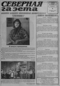 \ Год молодежи / В минуты вдохновения В фойе культурно-досугового центра размещена выставка картин Ксении Сычевой. Когда-то девушка обучалась в школе искусств Северного, теперь проходит здесь практику, а еще ведет клубный кружок. Она преподает детям изобразительное и прикладное искусство, развивает их творческие способности, учит видеть в обычном прекрасное. Ксения приобрела любимую профессию, и хотя преподает немного, не разочаровалась в своем выборе. Ксюша не только рисует, но и занимается лепкой, керамикой, батиком, росписью...Самое неприятное, по ее словам, время, потраченное зря. «В минуты вдохновения...», так девушка назвала свою выставку. Творит она по настроению, а оно у нее есть практически всегда. Центральная тема выставки - природа. - Некоторые картины я рисовала за оградой своего дома, сидя на лавочке, - говорит юная художница. - Своим творчеством, хотела сказать, что вокруг нас прекрасный мир, стоит только оглянуться. Ю. ШАЕВА. В Северном прошел фестиваль-праздник белорусского творчества. На нем присутствовали фольклорно-этнографические коллективы из Северного, Усть-Таркского, Убинского, Кыштовского, Коченевского, Здвинского районов. Участников мероприятия поздравила директор Новосибирского центра белорусской культуры Н.В. Кабанова. Фото О. ФЕДОРОВОЙ. г-ШППВВ Ш В Ш «Салют, Победа!» ; В Куйбышеве прошел второй этап областногоконкурса твор- 1 ческих театральных программ в рамках всероссийского фестива- ■ ля народного творчества «Салют, Победа!». Наш район там пред -! ставляли Евгения Зайцева из Гражданцево, Аня Руденко, Елена ■ Сандзюк и участники военно-патриотического клуба из Север-1 ного. Дипломом за лучшую театральную программунаграждена | М. В. Муликова. ■ Культура и спорт ! Работники Гражданцевского Дома культуры подготовили и > провели для учащихся 2-7 классов спортивные и игровые про- ! граммы: «Спорт в семье нам не помеха», «Вот компания какая», ■ «Клуб веселых и находчивых», «Наша дружная семья». В мероп- | риятиях участвовало несколько команд, которые состязались в | конкурсах. Победители получили призы от партии «Единая Рос- ■ сия». В честь Дня матери | Представители клуба «Берегиня» - специалисты комплексно- ! го социального центра в честь Дня матери посетили роддом. Там ■ они поздравили будущих мам, подарили им цветы и фотоальбо-1 мы, куда потом можно будет помещать фотографии своих малы-1 шей. • Совет женщин ! На очередном заседании Совета женщин района были рас- ■ смотрены вопросы социальной поддержки семей с детьми, ра- ! боты клубов общения женщин, проведения акции «За здоровый I быт в семье» деятельности Совета женщин с. Биаза. По данным | вопросам выступили члены президиума Совета женщин Хрущева I Л.В., Андреева Н.П., Шпакова О.А. и председатель биазинского ■ женсовета Мокроусова Л.Е. Над предложениями, высказанны- , ми на заседании, Совет женщин продолжит работу в следующем * году. 1 Семинар | На базе СПК «Верх-Красноярский» прошелсеминар-совеща-1 ние по постановке техники на зимнее хранение. На нем присут- I ствовали руководители сельхозпредприятий, инженеры. Участ- ■ ники семинара осмотрели технический парк хозяйства, который ! уже подготовлен к этому периоду. Удовлетворительно идет эта ■ работа и в других хозяйствах. I Интересный концерт I Участники художественной самодеятельности бергульского | Дома культуры п