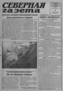 с 11 февраля 2010 года ЧЕТВЕРГ №6(8321) Основана в июне 1935 года Даньуважения и памяти Уважаемые воины-интернационалисты, участники боевых действий в Афганистане, ветераны локальных конфликтов, военнослужащие, жители Северного района! Двадцать один год назад для тысяч наших сограждан - тех, кто нес воинскую службу за пределами Отечества, выполняя интернациональный долг, закончилась война на территории Афганистана. Ценой своей жизни они пытались отстоять право афганского народа на мир. Любая война - это насилие, колоссальная несправедливость, преступление против человечества. Можно спорить о том, насколько необходимо было участие наших солдат и офицеров в военных действиях тех лет. Но не оставляет сомнения один факт: есть ценности мира, добра, благополучия, отстаивать и защищать которые - долг каждого, вне зависимости от национальности, вероисповедания, гражданства. Не бывает «чужой» войны. Если где-то гибнут люди, нарушена мирная жизнь, границы государства, невозможно воспринимать эти события равнодушно. Тысячи воинов несли службу в Афганистане. Воинами-освободителями их считаем и мы, и афганский народ. Но этот памятный день имеет привкус горечи: многие не вернулись с той войны, став героями навечно. Хотим пожелать всем не забывать афганских событий, помнить павших и живых - наших земляков, которые честно исполнили свой воинский долг, рискуя жизнью ради великой цели - мира на земле. Спасибо всем воинам- интернационалистам за подвиг мужества. Честь вам и слава! Примите искренние пожелания вам и вашим семьям крепкого здоровья, благополучия и мира! В.Г.ИВАШКЕВИЧ, глава Северного района Новосибирской области \ В администрации Новосибирской области/ 65 лет Велпкоп П об еды Более 13 тысяч новосибирских школьников стали участниками областного конкурса сочинений «Парень из нашего города». Он приурочен к 65-летию Победы в Великой Отечественной войне и посвящен увековечиванию памяти трижды Героя Советского Союза, маршала авиации Александра Ивановича Покрышкина. «По итогам двух первых этапов конкурса - школьного и муниципального - отобрано более 200 работ, - рассказал руководитель областного департамента образования Владимир Иванов. - Теперь конкурсной комиссии предстоит выбрать из них лучшие сочинения по каждой возрастной группе школьников - начальной, средней и старшей». По его словам, итоги будут подведены в апреле нынешнего года на гала-концерте фестиваля детского юношеского творчества «Салют, Победа!». Департамент информации администрации Новосибирской области - шппвз ишаЕСобрание представителей коллек тивов В-райцентре состоялось совещание представителей трудовых кол- I лективов, которые и в нелегких экономических условиях продолжают | работать, поддерживая производственную базу в стабильном состоя- ■ нии. Открывая совещание, Глава Северного района В. Г Ивашкевич | подчеркнул, что при подведении итогов 2009 года, необходимо состав- I пять и планы на будущее, потому что оно определяет жизнь района, I развитие его отраслей. Высокая оценка У двух художниц, Риммы Гордеевой и Ксении Сычевой из нашего I района, состоялось открытие выставки в художественной школе Куй- * бышева. Она называлась «В краю родном», и была представлена их | лучшими работами живописи, в частности, натюрмортом и пейзажем. ■ Ксения еще представила батик и гобелен. В те