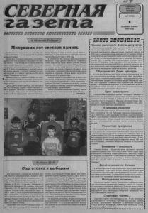 \ К 65-летию Победы ~J Минувших лет светлая память Приближается знаменательная дата 65- летний юбилей Победы нашего народа в Великой Отечественной войне. Недавно в Остяцкой библиотеке состоялось мероприятие под названием «Минувших лет светлая память». Участниками этого урока мужества были учащиеся школы, члены кружка «Юный корреспондент» во главе с руководителем Поздняковой В. В. Дети познакомились с книжной выставкой «Книга памяти», в которой содержатся краткие сведения о погибших, пропавших без вести бойцах, призванных на фронт. Каждый ребенок подержал в руках эти книги. У ?бята узнали о погибших земляках, узнали о своих родственниках, кому не посчастливилось вернуться домой. Сурков Данил нашел страницы, где написано о том, что его прадед Сурков Степан Павлович погиб 18 февраля 1944 года в Новгородской области. Гламаздин Влад узнал, как сложилась фронтовая судьба его прадедушек, братьев Смеловых. Артем Сергеевич погиб в Белгородской области в 1943 году, Андрей Сергеевич и Григорий Сергеевич пропали без вести тоже в 1943 году. К сожалению, все меньше и меньше остается ветеранов. И мы должны сделать все возможное, чтобы сохранить в веках память о наших близких, родных, о тех, кто приближал День Победы. Нам нужно помнить всегда, какой страшной ценой завоевана победа над врагом. Помнить о подвигах своих отцов, дедов, прадедов, чтобы не повторились вновь те ужасы и страдания, которые выпали на долю нашего народа в те грозные годы. Войщев Андрей и Гламаздин Влад зачитали свои сочинения, посвященные прадедушкам Ликаровс- кому Александру Иосифовичу (ныне покойному) и Смелову Василию Григорьевичу, которым суждено было вернуться живыми с войны и дойти до родного дома, увидеть своих близких. Ребята с большим вниманием слушали, зачитывали отрывки из своих сочинений, стихи о войне. СУРКОВА Т. Г. V Выбора-2010 / Подготовка к выборам Для подготовки и проведения выборов органов местного самоуправления Северного района Новосибирской области сформированы 24 участковых избирательных комиссии, в составе которых 160 членов, в возрасте до 25 лет - семь человек, до 30 лет - 19 человек. Собранием избирателей выдвинуто 114 человек, сельскими Советами - 20. От местного отделения Партии «Единая Россия» в них участвует 24 члена, от КПРФ - два. В 2.008 году на территории района были образованы муниципальные избирательные комиссии сроком на четыре года. В них 68 человек. Возраст членов до 25 лет - один, до 30 лет - шесть. В территориальной избирательной комиссии девять членов. Образован один единый избирательный округ. В нем зарегистрировано 35 кандидатов в депутаты. В состав вошли четыре партии: местное отделение Партии «Единая Россия», ЛДПР, КПРФ и «Справедливая Россия». От «Единой России» округ представляют Звыков Игорь Викторович, Врагов Федор Васильевич, Осипов Сергей Григорьевич. ЛДПР представляют Жоров Владимир Петрович, Слепцов Евгений Сергеевич, Исмайлов Асиф Магаммед Оглы. От КПРФ в составе округа Ипатьев Николай Александрович, Ивашкевич Григорий Иванович, Закамс- кий Сергей Иванович, от Партии «Справедливая Россия» - Кучумов Владимир Иванович, Охалин Максим Сергеевич, Акулов Андрей Алексеевич. На предстоящие выборы общее количество зарегистрированных кандидатов в главы муниципальных поселений - 31, в депутаты районного и сельских уровней по одномандатным.избирательным 