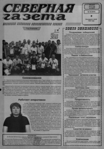 Соревнования В г. Каргате прошли окружные спортивные соревнования в честь "Года Учителя" на призы депутата Новосибирского областного Совета депутатов, члена партии "Единая Россия" Морозова Александра Владимировича, в которых приняло участие 4 района: Убинский, Доволенский, Каргатский и Северный. Северный район принимал последний раз участие в связи со сменой округов. Наши спортсмены состязались в пяти видах спорта: волейбол, настольный теннис, гиревой спорт, мини- футбол, шахматы. Команды по настольному теннису, гиревому спорту, мини- футболу заняли 1-е места, шахматисты стали вторыми, волейболисты - третьими, что в сумме всех набранных очков вывело команду Северного района на первое общекомандное место. Депутат Областного Совета А.В. Морозов вручил победителям кубок за 1-е место, диплом 1 степени и денежный приз в размере 40 тысяч рублей. На снимке: команда Северного района Работает оперативно Конкурс "Молодой специалист года" определил наиболее энергичных, инициативных и деятельных активистов из числа работающей молодежи учреждений, предприятий, организаций района. Специалисты каждой номинации были награждены Дипломами и памятными подарками. Среди награжденных и Елена Ларионова, начальник военно-учетного стола администрации.. Она стала одним из победителей конкурса. Работа у Елены ответственная. Как специалист военкомата, она взаимодействует с органами местного самоуправления, производит учет всех технических средств, находящихся на территории, ему подотчетной и выполняет целый ряд социальных задач. Это касается области здравоохранения призывников, регулярных медосмотров и так далее. По сути, военкомат страны является ядром нашей армии, имея широкий круг задач. В его деятельность включена не только организация призыва новобранцев в войска, но и учет рядовых и офицеров запаса. Елена Ларионова выполняет все эти функции оперативно и пунктуально. На снимке: Е. Ларионова ИНФОРМАЦИЯ об объемах финансовых средств, выделенных на подготовку учреждений образования к новому 2010-2011 учебному году На подготовку образовательных учреждений Северного района к новому учебному году, проведение текущих и капитальных ремонтов в 2010 году из бюджетов разных уровней выделено более 11 млн. руб., в том числе из областного бюджета по программе "Школьное ок^о" - 2,5 млн. руб. и 189,6 тысяч рублей на реконструкцию помещений дошкольных групп, из местного бюджета на текущие ремонты и приобретение материалов -1 млн. 800 тыс. рублей, капитальные ремонты - 6 млн. 701,7 тыс. рублей. г- Ш П В В1 ш ш ш ш ш ш ■ Поздравляем победителей Определены победители в соответствии с Условиями областного I соревнования работников животноводства Новосибирской области в | 2009 году. Соответствующее распоряжение подписал Губернатор В.А.- | Толоконский. Отрадно, что среди получивших призовые места - . наши земляки. Награжден Почетной грамотой Губернатора Новоси- * бирской области иденежной премией в размере 80 тысяч рублей сель- I скохозяйственный производственный кооператив "Верх-Красноярский" | (председатель Шрейдер Владимир Мартынович), занявший третье ме- ■ сто среди сельскохозяйственных организаций по Барабинской зоне. Смотр-конкурс В Кыштовке состоялся зональный смотр-конкурс приемных семей. . Из нашего района в нем приняли участие семьи В. И. Глякиной и И. И. I Копляровой. Несколько 