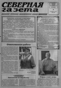 с 2 сентября 2010 года ЧЕТВЕРГ №35 (8350) Dl Основана в июне 1935 года У В АЖ А ЕМ Ы Е В Е ТЕ РАНЫ И Р А Б О ТН И К И Н ЕФ ТЕГА ЗОДО БЫ ВАЮ Щ ЕЙ О Т Р А С Л И ! Поздравляем вас с профессиональным праздником - Днем работников нефтяной и газовой промышленности! Сегодня мы чествуем людей нелегкой, поистине мужской профессии - профессии, которая требует силы, выдержки и высокого мастерства. И во многом благодаря Вашему упорному каждодневному труду, в том числе в нашем районе положительно решаются вопросы строительства жилья, объектов социально-культурной сферы, ремонта дорог и общего благополучия северян. Уважаемые нефтяники! Вы заслуживаете самого высокого признания! Особую благодарность и искреннее уважение хочется выразить вете- анам, тем, кто шел первым и первым ощутил теплое биение нефти в трубопроводе. Успехов вам, разработок новых месторождений, увеличения объемов добычи и переработки, осуществления самых смелых проектов, благополучия и процветания! Искренне желаем вам мира, семейного тепла, здоровья и плодотворной работы. С уважением, Глава Северного района Новосибирской области В. Г. ИВАШКЕВИЧ Председатель Совета депутатов Северного района Новосибирской области И. В. ЗВЫКОВ Ответственная работа В век техники автозаправочная станция - первейшее необходимое предприятие как в городе, так и в селе. В Северном ее владельцем является ОАО "ГазпромнефтьНовосибирск". Двадцать один год назад, когда сюда пришла работать Г. А. Сотс- кова, она носила другое название, да и была проще на вид. Сейчас станция имеет современный эстетический дизайн, усовершенствованное оборудование, но суть работы небольшого коллектива операторов осталась прежняя: "кормить" машины бензином. - Кстати, машин с годами становится больше, - говорит Галина Александровна. - Теперь на мотоциклах никто не подъезжает заправляться. Обслуживаем и частный сектор и технику организаций. На тех же условиях работаем с сельхозпредприятиями. Галина Александровна старший оператор и несет большую ответственность за бесперебойную работу заправки. Нужно, чтобы резервуары были всегда заполнены бензином, коллектив трудился слаженно, документы оформлены безошибочно. Кроме того, она отслеживает работу магазина, который был здесь открыт. В нем есть продуктовый отдел и технический, где проезжающие могут приобрести необходимый товар. Такое совмещение должностей не оставляет ей за смену свободного времени. Но свое дело Г. А. Сотскова любит и в день работников нефтяной и газовой промышленности говорит своим коллегам - Я поздравляю всех ветеранов, коллег с профессиональным праздником. Желаю вам и вашим семьям здоровья, счастья, взаимопонимания и благополучия. О. ФЕДОРОВА. На снимке: Г. А. Сотскова. Фото автора. \ Выборы-2010 ! ~ Приглашаем на жеребьевку 2 сентября в 11.00 часов в редакции "Северной газеты" проводится жеребьевка по распределению бесплатной агитационной печатной площади среди зарегистрированных кандидатов и уполномоченных представителей избирательных объединений по выборам в Законодательное Собрание Новосибирской области. После этого с участием заинтересованных лиц на основании письменных заявок проводится жеребьевка по распределению платной печатной площади и установления дат опубликования предвыборных агитационных материалов зарегистрированных кандидатов и уполномоченных п