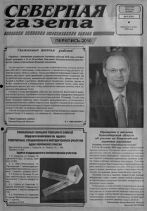 СЕВЕРНАЯ ПЕРЕПИСЬ-2010 г С14 октября 2010 года ЧЕТВЕРГ и ■> №41 (8356) Основана в июне 1935 года $ Уважаемые жители рай она ! Перепись - важнейшее социально значимое событие 2010 года, которая будет проходить с 14 по 25 октября. Она имеет большое значение для развития страны и воспитания будущих поколений. Точные данные о населении, его составе и характеристиках, которые должна дать ВПН-2010, необходимы, чтобы грамотно, с прицелом на будущее вести хозяйство страны, области, района. Только достоверная информация позволит правильно рассчитать такие важнейшие социально-экономические показатели как потребительская корзина, минимальная заработная плата, размер пенсий, стипендий и пособий и выстроить эффективную социальную политику, сделав ее более реалистичной и справедливой. Перепись позволит понять, какие меры необходимо принять для того, чтобы существенно повысить качество жизни населения в ближайшие 10 лет. Готовясь к этому важнейшему событию, мы полностью восстановили адресное хозяйство улиц, подобрали и обучили переписчиков, определили помещения для размещения переписных и инструкторских участков. В течение 12 дней, пока будет проходить перепись, важно проявить организованность, с пониманием и уважением отнестись к работе переписчиков. Давайте поможем им в выполнении этой важной государственной задачи! Своим доброжелательным отношением и четкими ответами на вопросы переписных анкет. Участие во Всероссийской переписи - общественная обязанность каждого гражданина России. И я надеюсь, что северяне эту обязанность выполнят! \Глава Северного района Новосибирской области В. Г. ИВАШКЕВИЧ Ч lllll!lllllllllllllllllllllll!llllllllllllllll!lllllllll!llllllllilllll|lll||l|||||||||||||||l|||||!l||||||||||||l!lll|||||||||||||||||||||||llllll|||||||||||||||||||||||i;i llj|||lilllllllllllllllllllllllllll!jllEIIIIIIIIIII!lllillllllllllllllllllllllllllll!lllllllllllll!!llllllllllltl!lllll|llllllll|ll||ll|IIM Уважаемые граждане Северного района! Обратите внимание на адреса переписных, стационарных и инструкторских участков Адрес переписного участка Два участка в одном: с. Северное, ул. Ленина. 18, к. 248 Телефон 21-905. Адреса стационарного и инструкторских участков Ь - Ill......... I ll- .............ЕМ!'..................... ................ ............... ||. | : 1. С. Северное, ул. Ленина, 18, здание МУК КДЦ - 2 участка, телефон 21-905. 2. С. В е р х -К р а с н с я р к а , ул. Партизанская, 7, здание администрации Верх-Красноярского сельсовета -1 участок, телефон 44-673. 3. С. Биаза, ул. Бугаева, 72, здание администрации Биазинского сельсовета - 1 участок, телефон 32- 542. 4. С. Чуваши, ул. Советская, 37, здание библиотеки Чувашинского сельсовета -1 участок, телефон 46- 134. 5. С. Новотроицк, ул. Советская, 2, здание Невотроицкого сельсовета -1 участок, телефон 47-374. |||||11|111111111111Ш111М111111111111^ ........ ....... mini.......... ................. ..........................................in........... Обращение к жителям Новосибирской области об участии во Всероссийской переписи населения Уважаемы жители Новосибирской области! С 14 по 25 октября 2010 года пройдет Всероссийская перепись населения. Это одно из самых масштабных государственных событий. Важность проведения переписи населения сложно переоценить - собранные в ее ходе данные позволят планировать дальнейшую стратегию развития страны и региона в интересах всех граждан. По итогам обработки данных будут определяться первоочередные задачи, начиная от строительства школ, больниц и детских садов в каждом населенном пункте и заканчивая политическими программами уровня национал