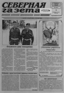 СЕВЕРНАЯ 17 февраля 2011 года ЧЕТВЕРГ №7(8374) Северная ЦБС НСО 03793563217023 Основана в июне 1935 года ЕВЕВВШЕЕЕЕТЕШШЕЕ! ВШВШЕВОЕ С ДНЕМ ЗАЩИТНИКА ОТЕЧЕСТВА! Служили два товарища Денис Грошев и Иван Савельев дружили с детства. Вместе ходили в школу, играли, занимались в профильном классе социально-гуманитарной ориентации, значит, определились с выбором профессии. Но с дальнейшей учебой пришлось подождать, потому что осенью, сразу после окончания школы, пришло их время призыва в армию. Друзья обрадовались, когда узнали, что направили их вместе на Алтай - в ракетные войска стратегического назначения. И служили они в одном гарнизоне, хотя в разных группах. Но виделись каждый день. - Вначале было трудноват то, - вспоминают они недавнюю службу,- ранние подъемы, ежедневная четырехчасовая физическая подготовка, марш- броски с полной боевой выкладкой в противогазах... С благодарностью отзывались ребята о И. Т. Ульжебае- ве, с которым три года изучали военное дело. - Это нам помогало быстрее освоиться, и служба постепенно становилась привычным делом. Денис и Иван изо дня в день' воспитывали в себе выносливость, терпение, пунктуальную дисциплинированность. Без таких качеств охрана боевой стартовой позиции невозможна. В армии они нашли новых друзей, с которыми потом делили все трудности солдатской жизни, тщательно изучали караульный устав и отлично понимали, что дружба, взаимовыручка - это долг каждого солдата. Осенью 2010 года Иван и Денис покинули гвардейский ордена Кутузова I степени полк и вернулись домой, в Северное. - Служба в армии делает взрослее,- говорят они,- ответственнее, целеустремленнее. Это хорошая жизненная школа. Сейчас ребята учатся в профессиональном училище №91, чтобы впоследствии получить права водителей, а далее планируют поступать в высшее учебное заведение. О. ФЁДОРОВА На снимке: Денис Грошев и Иван Савельев. Фото автора Уважаемые защитники ОтегестваI От всей души поздравляем вас с наступающим праздником! 23 февраля - это праздник всех, кто верно служит России, кто готов в любую секунду встать на защиту Родины. В наше мирное время воины российской армии несут боевую службу. Она требует профессионализма, владения боевыми навыками, сложной техникой, которой обеспечены вооружённые силы. Но самое главное - и сегодня от солдат и офицеров требуются высокие моральные качества, готовность к подвигу, мужество и героизм. Отмечая День защитника Отечества, мы с благодарностью вспоминаем и воинов, отдавших свою жизнь за Родину. В этот праздничный день желаем всем военнослужащим, ветеранам и настоящим мужчинам Северного района крепкого здоровья, уверенности в завтрашнем дне, мира и благополучия! Собрание представителей трудовых коллективов В зале районного Дома культуры собрались представители трудовых коллективов организаций и общественности для подведения итогов социально-экономического развития района за 2010 год и планирования его дальнейших перспектив. Поприветствовать собравшихся глава Северного района В. Г. Ивашкевич. Он предложил избрать состав рабочего президиума, после чего зачитал свой доклад, в котором говорилось о реализации поставленных социальных задач. Также с докладами выступили И. В. Звыков, председатель Совета депутатов, глава Северного сельсовета С. А. Шапкина. Выслушали на собрании и представителей здравоохранения, о