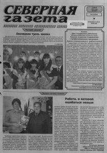 \ Прощай, школа! / Последняя трель звонка Для выпускников школ района 25 мая стал грустным памятным днем. Грустным потому, что для них прозвенела последняя трель звонка, которая больше не позовет на урок. Пришло время расставания с учителями, с друзьями. Впереди экзамены, светлые оптимистичные планы на будущее, новая взрослая жизнь. В ней выбор профессии, учеба, работа, а пока они вместе с родителями пришли на праздничную линейку, слушали поздравления и добрые напутственные пожелания. С. СЕМЕНОВА. 8 июня - День социального работника! Уважаемые работники социальных служб! Примите искренние поздравления с профессиональным праздником - Днем социального работника! Указом Петра I от 8 июня 1701 года было положено на- | чало развитию системы социальной защиты в России, но | название профессии "социальный работник" появилось | только в 1991 году. Социальное обслуживание в России | начало формироваться 20 лет назад с открытием в учреждениях социальной защиты населения отделений социаль- ; ной помощи на дому. И вполне закономерно, что главные | слова в названии профессионального праздника всех работников системы социальной защиты именно "социальный работник", что подчеркивает особую значимость и важность людей этой профессии в современном обществе! Гуманизм и доброта, отзывчивость и бескорыстие, стойкость и способность прийти на помощь всякому, кто нуждается в помощи, - вот основные профессиональные и душевные качества социальных работников! В любую погоду и время года вы доставляете своим подопечным про- | Дукты, лекарства, уют и чистоту в их дома, а еще - тепло- I ту своего сердца! Ваша деятельность связана с огромной ответственнос- | тью. потому что от вас во многом зависит жизнь пожилых граждан, инвалидов, детей, и всех тех, кто особенно нуждается в социальной защите и помощи государства. Спасибо за нелегкий труд, доброту и внимание, готовность разделить радость и печаль, прийти на помощь в трудную минуту. Желаем вам здоровья, счастья и семейного благополучия! Глава Северного района Новосибирской области В.Г. ИВАШКЕВИЧ Председатель Совета депутатов Северного района Новосибирской области И.В. ЗВЫКОЕ \ Всегда готовы помочь / Работа, в которой ошибаться нельзя Проблема подростковой преступности и безнадзорности является актуальной в наше время. Ежедневно сотрудники подразделения по делам несовершеннолетних ОВД по Северному району проделывают огромную работу по борьбе с этими явлениями, помогая трудным подросткам встать на правильный путь и найти себя. В этой сложной и ответственной профессии не мр- жет быть случайных людей - ее выбирают по призванию. Именно такими людьми, посвятившими свою жизнь работе с "трудными" детьми и детьми из неблагополучных семей являются старший инспектор подразделения по делам несовершеннолетних майор милиции Алла Геннадьевна Люст и инспектор подразделения по делам несовершеннолетних лейтенант милиции Алена Геннадьевна Кузнецова. Педагоги по призванию и милиционеры в душе они никогда не оставались равнодушными к детским проблемам, каждую из них воспринимают как свою собственную. Алла Геннадьевна и Алена Геннадьевна соприча- стны со многими детскими судьбами, многим подросткам помогли избежать горькой участи людей, затянутых в пучину преступности и порока. За добросовестное отношение к исполнению должностны