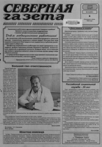 Большой груз ответственности Сергей Рудольфович Санников - врач - терапевт со стажем. С выбором профессии определился еще в школе. Окончив Новосибирский го с уд а р ственный медицинский институт, два года работал в городской больнице, там он приобрел ценный опыт, который пригодился ему, когда Сергей Рудольфович стал работать в районной больнице Северного. За годы врачебной практики он стал настоящим профессионалом. Врачебный талант - это не подарок судьбы, а результат упорного труда, желания всегда чему-то учиться . В 1991 году он получает квалификацию врача - анестезиолога - реаниматолога. В течение нескольких лет работал инфекционистом, три года совмещал должность судебно-медицинского эксперта. Свою профессию Сергей Рудольфович-считает очень нужной. - У меня имеются определенные медицинские знания и большой груз ответственности. Врач несет ответственность за здоровье человека. Невозможно привыкнуть к тому, что больные люди уходят из жизни. Каждая смерть оставляет в душе неизгладимый отпечаток, и все время задаешь себе вопрос: сделал ли я все что мог, чтобы изменить ситуацию. Выздоровление пациента - ‘ победа над болезнью, это приносит1ощущений удовлетворенности« моей работе.* ш ШШ& Юлия ШАЕВА. На снимке: С. Р. Санников Фото автора. Областная олимпиада На базе "Профессионального училища №81" прошла областная олимпиада профессионального мастерства по профессии "Тракторист - машинист сельскохозяйственного производства". В олимпиаде приняли участие более 20 сельских профессиональных училищ. Наше учреждение представлял Старников Сергей, обучающийся 2 курса, под руководством мастера производственного обучения Файника Николая Павловича. Олимпиада включала в себя этапы: теоретический, выполнение работ по слесарному делу, вождение и вспашка на сельскохозяйственной технике. По итогам всех конкурсных заданий Сергей занял 15 место. ^День памяти и скорби / Дорогие ветераны, труженики тыла, жители Северного района! 22 июня - одна из самых печальных дат в нашей стране. В этот день, ровно 70 лет назад началась Великая Отечественная война - величайшая трагедия в истории нашей Родины. Эта война принёсла неисчислимые страдания, разрушения, горечь утрат, оставила незаживающий след в сердцах всех следующих поколений. Четыре года наш народ противостоял фашистской агрессии. Мы выстояли и победили, но заплатили за это миллионами жизней... Наш святой долг - беречь память о погибших и умерших от ран защитниках Отечества, о каждом из тех, кто ценой собственной жизни сохранил свободную и мирную жизнь для нас и будущих поколений. Память о них священна. День памяти и скорби, всегда должен напоминать нам, какой страшной ценой завоеваны мир и радость жизни на свободной земле... Дорогие ветераны ижители Северного района, крепкого здоровья вам, счастья, благополучия и мирного неба над головой! Глава Северного района Новосибирской области В.Г.ИВАШКЕВИЧ; Председатель Совета депутатов Северного района Новосибирской области И.В.ЗВЫКОВ. Российской социальной службе - 20 лет Люди, находящиеся в трудной жизненной ситуации, нуждаются в государственной поддержке. На помощь приходят социальные работники, которые не только выполняют свои обязательства, но и поддерживают добрыми словами. В любую погоду социальные работники там, где требуется их помощь. Российской соци