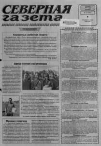 |ТьУ оШ ьЗ 7Д1 521 521 521 оШ о21 сШ с=У 521 521 ьУ сШ гДГ Уважаемые любители спорта! та | сьУ [^и с?_] ЕьУ ЕьУ Щ1 Э Г Е £ п о з д р а в л я ем ва с с 'Онем еризкультурника, с праздником спорта и здоровья! Во все времена именно здоровые и спортивные люди составляли опору общества. Все больше людей осознают необходимость развития физической культуры, пропаганды здорового и спортивного образа жизни среди молодежи. Спорт не только закаляет здоровье, он воспитывает дух, характер, волю, умение выходить из проблемных ситуаций, не бояться трудностей. У каждого свои рекорды, пусть каждый день приносит в нашу жизнь новые победы. Главное в спорте - не победить соперника, а победить себя, свой страх, свою неуверенность. Разрешите пожелать вам спортивной удачи, новых достижений. Тем же, кто начинает свой путь в спорте, желаем не пасовать перед проблемами и помнить, что самое главное - играть честно. Счастливой вам дороги на пути к новым рекордам! Глава Северного района Новосибирской области В. Г. Ивашкевич; Председатель Совета депутатов Северного района Новосибирской области И. В. Звыков. и." Iо=П с=п Р=П о=П Д=П р=Т 1 ДпП РТ1 Рт1 5 1..51 51_51 5 51 51-51 51. ,5 1 5 . .5 1. .51 ,.51 ..51...51—51 5 1....51—51-..15 1—51. Пятая летняя спартакиада В селе Усть-Тарка Усть-Таркс- кого района Новосибирской области прошла пятая летняя спартакиада муниципальных образований Новосибирской области. Защищали честь Северного района спортсмены Верх-Красно- ярского сельсовета, под руководством специалиста 1 разряда отдела культуры, молодежи и спорта администрации Северного района Новосибирской области О.А. Зыряновой и директора Муниципального образовательного учреждения дополнительного образования детей Северного района детско-юношеского центра физкультурноспортивной направленности В.М. Корнякова. Всего принять участие приехало 30 делегаций области. 9 июля состоялось торжественное открытие спартакиады, на котором присутствовал губернатор Новосибирской области В.А. Юрченко. Было очень красиво, ярко и зрелищно. А так же по всем традициям был зажжен олимпийский огонь. Ребята на протяжении всех соревнований участвовали в таких видах спорта: волейбол, русская лапта, армспорт, легкая атлетика, гиревой спорт, а так же семья Садовниковых (Олег, Наталья и Влад) приняли участие в соревнованиях среди спортивных семей. Итоги в командных видах были таковы: Волейбол - 5 место, легкая атлетика -10 место, гиревой спорт - 6 место, армспорт -11 место, русская лапта - 4 место и в соревнованиях среди спортивных семей - 3 место. Общекомандное место -13. В личном зачете Краснов Сергей в гиревом спорте в весовой категории до 78кг занял 2 место и Алексей Брацук в армспорте в весовой категории до 65кг так же занял 2 место. ЗЫРЯНОВА ОЛЕСЯ На снимках: команда Северного района; Сергей Краснов. Прошел семинар В п. Чаны прошёл семинар для специалистов по работе с молодёжью, социальных педагогов, психологов и других специалистов "Интерактивные формы профилактики девиантного поведения в молодёжной среде". От Северного района в семинаре участвовала делегация в следующем составе: Александрова О.В., Блинова О.С., Данилова О.А., Ковган Л.В., Узких Н.В.. Программа семинара включала теоретический и практический блок. В рамках теоретического блока были рассмотрены следующие темы: общие вопросы профилактики правонарушений, формы профилактической деятельности, планиро