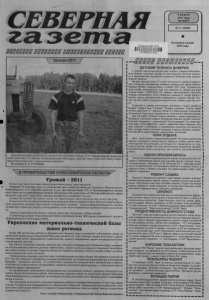 МУНИЦИПАЛЬНЫЕ ВЕСТИ >- Северный район с рабочим визитом посетил министр образования, науки и инновационной политики Новосибирской области В.А. Никонов. Он побывал в МБОУ Северного района Новосибирской области "Биазинская общеобразовательная школа-интернат", МОУ Северного района Северной средней общеобразовательной школе, МДОУ Северного района Северном детском саду "Солнышко". В администрации Северного района Новосибирской области Фондом модернизации и развития ЖКХ Новосибирской области проведено выездное совещание по вопросу реализации мероприятий модернизации и развития жилищно-коммунального хозяйства Северного района с участием представителей ОАО "Управляющая компания "Союз", администрации Северного района Новосибирской области, Биазинского и Чувашинского сельсоветов. Произведены проверки выполненных работ по реконструкции водопроводных сетей в с. Биаза и гидропневмохимической очистки котлов и котельного оборудования в муниципальных образованиях района. В результате совещания намечены сроки завершения работ и порядок отчета по использования средств Фонда. >• В рамках подготовки к конкурсу бюджетных проектов для включения в "Народный бюджет" представители администрации Северного района приняли участие в защите проекта от Северного района по строительству нового детского сада в с. Северное. >• Проведен аукцион в электронной форме на выбор подрядчика по замене оконных блоков в МОУ Гражданцевская средняя обще- обоазовательная школа в рамках осуществления мероприятий по замене окон в муниципальных образовательных учреждениях, финансируемых из бюджета Новосибирской области. >- Продолжается прием заявлений на получение путёвок в детские оздоровительные лагеря. Размер предельной доплаты из средств местного бюджета Северного района Новосибирской области за путевку в санаторный лагерь (21 день) составляет 11500,0 рублей, за путевку в круглогодичный лагерь (21 день) - 8000,0 рублей, за путевку в летний лагерь (21 день) - 7000,0 рублей. Частичную оплату стоимости путевки или возмещение расходов учреждениям (организациям) за самостоятельно приобретенную путевку в летний период в круглогодичный лагерь или в летний лагерь сроком пребывания 21 день, расположенный на территории Новосибирской области, в размере 50% от стоимости путевки, но не более 6720,0 рублей в круглогодичный лагерь и 5460,0 рублей в летний лагерь. >- Хозяйствами района начаты работы по заготовке сена. Всего в Северном районе 2810 голов крупного рогатого скота и 2110 лошадей. Чтобы полностью обеспечить животных кормами, за короткий период сенокоса необходимо заготовить 5398 тонн сена, 4455 тонн сенажа и 3921 тонну соломы. Завершен ремонт асфальтобетонного покрытия участка автодороги Куйбышев-Се- верное, протяженностью 1,039 км. По новой технологии, способом холодной регенерации, произведена смена 2-х слоев асфальтобетона. Работы велись с 23.06.2011 по 27.07.2011, подрядчик: ОАО "Новосибирскавтодор" филиал Барабинского ДРСУ Северный участок. На весь ремонт затрачено 14,486 млн.руб. Здравоохранение Одна из задач региональных программы модернизации здравоохранения - это повышение уровня зарплат врачей и среднего медперсонала. Мы ставим цель - за два года фонд оплаты труда медицинских работников должен увеличиться примерно на 30-35%. Кстати говоря, это будет зависеть от того, как будут внед