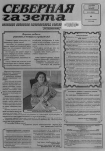 СЕВЕРНАЯ \ ПОЗДРАВЛЯЕМ!/ Л Дорогие ребята, уважаемые педагоги и родители! Примите самые искренние по здравления с Днём знаний! 1 сентября - это праздник первого звонка, самый долгожданный день для тех, кто впервые переступит школьный порог. В этот день все дороги ведут к школе. Нарядные ученики, взволнованные родители и учителя. Дорогие родители, уважаемые педагоги! Пусть в жизни вас и ваших детей всегда будет место знанию, мудрости, которые помогают справляться с житейскими неурядицами, а школа всегда остаётся добрым, тёплым домом, в котором всегда интересно и уютно. Пусть День знаний для всех вас станет Днём больших надежд. Здоровья вам, счастья, успехов в учёбе и творчестве! Глава Северного района Новосибирской области В.Г. ИВАШКЕВИЧ Председатель Совета депутатов Северного района Новосибирс-1 кой области И.В. ЗВЫКОВ Дорогие школьники и студенты! Уважаемые учителя и родители! С радостью поздравляю вас с праздником 1 сентября! Пусть для всех вас новый учебный год будет ярким и успешным, насыщенным счастливыми событиями и удивите л ьны м и о т кры ти ям и ! Помните, что в знании - наша сила, и только знания делают человека по-настоящему свободным! Желаю всем учащимся успеха в достижении поставленной цели! Будьте лю бо зна тельны , ищите новые пути решения, не стойте на месте - и тогда перед вами откроются новые, прекрасные горизонты! Дорогие родители! Пусть ваши дети всегда радуют вас хорошими отметками! Пусть ваше терпение, внимание и чуткость поддерживают их в преодолении трудностей учебы. А наградой за это будет совместная радость от достигнутого успеха! Уважаемые педагоги! Желаю вам в новом учебном году продуктивного творческого поиска, профессионального роста, неизменного оптимизма и замечательных учеников! Низкий поклон вам за ваш великий труд! С 1 сентября! СДнем знаний! С уважением, Депутат Законодательного Собрания НСО Ашот Вардкесович РАФАЕЛЯН Учитель начальных классов Северной средней школы Наталья Владимировна Афанасьева. Уважаемые работники и ветераны нефтегазодобывающей отрасли! П рим и те самы е искренние поздравления с проф ессиональным праздником - Днём работника нефтяной и газовой промышленности! Благодаря вашему труду, мастерству, тр у долю бию и ответственном у о тнош ению к делу, в дома приходят свет и тепло , промышленность и транспорт получают столь необходимое энер гетическое сырье . В ден ь проф ессионально го праздника позвольте побла годари ть вас за проф е сси она лизм и ответственность , за добросовестны й т я жёлый труд и верность своем у делу. От всей д уш и желаем вам, вашим родным и близким кре п ко го зд оро в ья , бла гополучия , удачи и новы х проф ессиональны х достижений на благо жителей района ! Глава Северного района Новосибирской области В.Г.НВАШКЕВИЧ; Председатель Совета депутатовСеверного района Новосибирской области И. В. ЗВЫКОВ, Северная ЦБС НСО С 1 сентября 2011 года ЧЕТВЕРГ № 35 (8402) Основана в июне 1935 года 03788163217023 ^ ^ г щ Дорогие земляки! Поздравляем вас с замечательным праздником - Днем знаний! Этот праздник одинаково дорог всем жителям Новосибирской области. У каждогр из нас был свой первый класс, свой первый урок, первая учительница. Мы бережно храним воспоминания о школе, любимых и мудрых педагогах, веселых и дружных товарищах. Российская школа традиционно считается одним из лучших образовате