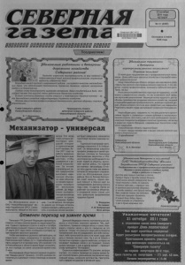 XПоздравляем! ж , уважаемые работники и ветераны дорожного хозяйства Северного района! Примите искреннюю признательность за ваш нелёгкий и добросовестный труд, высокий профессионализм, неизменную верность избранному делу! Благодаря вашей трудной и напряженной работе, улучшается качество автомобильных дорог, что обеспечивает• безопасность дорожного движения, хорошее настроение людей и их благополучие. Особые слова благодарности выражаем ветеранам. Ваши созидательные дела - достойный пример для молодой смены работников дорожного хозяйства. В этом сочетании богатого опыта старших и новаторского дерзания молодых - залог дальнейшего развития инфраструктуры дорожного хозяйства. Желаем вам успехов в профессиональной деятельности, крепкого здоровья, счастья и благополучия. Глава Северного района Новосибирской области В. Г. Ивашкевич Председатель Совета депутатов Северного района Новосибирской области И. В. Звыков Механизатор - универсал На обслуживании дорог в ОАО "Новосибирскавтодор" филиал Барабинское ДРСУ Северный участок находится 362 километра. Эта нитка трасс, которую ремонтирует, грейдирует, очищает от снега коллектив из 47 человек. Летом 2011 года на работу временно было принято еще шестеро, чтобы справляться с работой оперативнее. За летний строительный сезон предприятие выполнило намеченные объемы на семи объектах и с начала года освоило примерно 60 миллионов рублей. До Фёдо- ровки пройдено четыре километра дороги, по трассе Северное - Куйбышев -1 км 39 метров. На сегодня по дороге до Остяцка осталось отремонтировать небольшой участок, и основная летняя программа будет завершена, начинается подготовка техники к зимнему сезону. Тщательно осматривает авто- грейдер и машинистЛ.В. Бобровский. Он механизатор широкого профиля, универсал в своей профессии, поэтому за Леонидом Викторовичем закреплен и УАЗ, на котором при необходимости он возит людей на объекты, выполняет прочие рейсы. Но главная его техника - автогрейдер. В числе пяти других таких же механизаторов он ежедневно отправляется на обслуживание дорог района. Все их Леонид Викторович знает наизусть, изучил каждый поворот и обычно идет на грейдирование, расчистку снега в паре с кем - то другим. Летом он работает на основных объектах, и очередной сезон станет для него привычным продолжением трудовых будней. О. Федорова На снимке: Л. В. Бобровский Фото автора Отменен переход на зимнее время Президент РФ Дмитрий Медведев официально отменил летнее и зимнее время на территории России. Правило перевода стрелок в марте и октябре действовало в нашей стране в течение 30 лет. Дата 27 марта 2011 года стала последней в истории существования сезонного времени. Чтобы максимально удлинить световой день, на территории страны определены 9 часовых зон. Практически вся Сибирь (в т.ч. Новосибирская область) входит в 4-ю часовую зону. Это означает, что в Новосибирске и области время будет исчисляться, как и прежде, по схеме: московское время плюс 3 часа. Исследование общественного мнения социологов "Левада-Центр" показало, что 63% россиян положительно оценивают отмену перехода на зимнее время. Дмитрий Медведев отметил положительные моменты в отсутствии сезонного времени: "Мы, действительно, привыкли каждую весну и осень переводить стрелки часов и все по привычке на это ругаться, потому что 