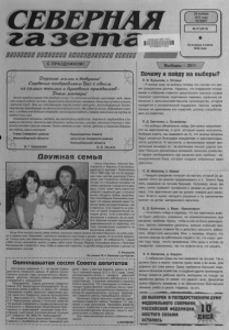 \ С ПРАЗДНИКОМ! / т Х о 'Оорогие м,ам,ы и бабушки! Сердечно поздравляем, Т$ас с одним из самых теплых и душевных праздников - 1)нем матери! Этот праздник важен для каждого из нас. Он наполнен особыми чувствами, ведь мама - это самый родной человек. Вырастить достойного человека, дать ему путевку в жизнь - великий труд. Это на собственном опыте знают женщины, воспитывающие детей, терпеливо передающие им ценный жизненный опыт. Мы идем по жизни, добиваемся чего- то и с годами все больше понимаем, каким грузом забот и тревог наполнено ее сердце за каждый наш шаг. Уважаемые женщины, матери, мы ценим вашу мудрость, терпение, трудолюбие и душевную теплоту. Крепкого вам здоровья, любви близких, улыбок, женского счастья и благополучия вам и вашим семьям. Пусть каждого из нас - юного, зрелого и пожилого оберегает любовь наших матерей. Глава Северного района Председатель Совета овосибирской области депутатов Северного района Новосибирской области В. Г. Ивашкевич И. В. Звыков (I Дружная семья Семья Баиновых, Николая Викторовича и Марины Алексеевны , дружная и крепкая. Поженились они в 1998 году, так что за прошедшие годы чувства родителей Юли и Даши уже проверены временем , потому что отношения основаны на любви, уважении и преданности друг другу. Слово "мама" здесь звучит как добрый и надёжный друг, с которым можно обсудить любую проблему. При этом Марина Алексеевна понимает, что мнение дочерей имеет такое же право на существование, как и взрослых. Она старается не упустить ни одной затруднительной ситуации детей, чутко улавливать их настроение и помогать им во всем. М.А. Баиновачеловек терпеливый и уравновешенный по характеру, что тоже положительно отражается на воспитании девочек. Когда Юля пошла в школу, мама поняла, насколько важно привить ей ответственность за учебу именно в первые годы. Ежедневно тщательно проверяла подготовку к урокам, оценки. И поступила правильно. Теперь дочь уже семиклассница, хорошо учится и знает, что труд в школе - это обязанность. У Даши учёба только начинается, значит, у мамы забот стало больше. Марина Алексеевна вместе с Николаем Викторовичем стремятся к тому, чтобы в семье всё ладилось, а дружба между родителями и детьми не прерывалась никогда. О. Федорова На снимке: М. А. Баинова с дочерьми. -------------------------------------------------------------------------------------------------------------------------------------------------------------------------1 Оапннааиатая сессия Совета депутатов 1 Состоялось заседание 1 1 - о й сессии Совета депутатов Северного района. В работе сессии I приняли участие главы муниципальных образо- | ваний, депутаты, прокурор района, руководители |учреждений и предприятий. Председатель Совета депутатов Северного I района И.В. Звыков вручил Благодарности "За до- | стигнутые успехи в работе и в связи с 20 - летнем | образования службы занятости" работникам центра занятости Северного района Большаковой I Л И., Мартыненко Н.А., Паньковой В.В., Шаврук | О.Л. Переходящим кубком и Почетной грамотой | "За высокие показатели в профессиональной деятельности и обеспечение общественной безо- I пасности и правопорядка" награжден Смык В.И., | старший участковый уполномоченный полиции | ОП "Северное" МО МВД РФ "Куйбышевский". На заседании было рассмотрено 11 вопросов. I Говорили о приобретении жилых помещений для I________________________________________________ детей - сирот, о местном бюджете района на 2011 | год и плановый