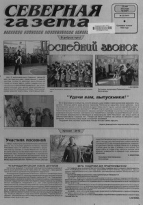 \ В добрый путь! / ) А. МАТВЕЕВА На снимке: выпускники Северной школы Фото автора Для 76 выпускников школ Северного района 25 мая стал памятным днем, торжественным и немного грустным, потому что школьный звонок больше не позовет их на урок. Цветы, улыбки, поздравления, напутственные слова учителей и родителей - все это вызывало волнение, ведь пришло время расставания с родной школой, любимыми учителями. Теперь выпускникам предстоит пройти очень ответственный этап - сдача выпускных экзаменов и выбор будущей профессии. " Удачи в а м , вы п у ск н и к и !" Вот и заканчивается учебный год, хочется написать в двух словах о своих выпускниках кружкового объединения "Веселые ребята" Дома детского творчества. Ребята за три года учебы многого добились. Были обыкновенными детьми, а сейчас мастера на сцене! Только за этот год мы с детьми разработали проект и участвовали на всероссийском фестивале 1Т- ПРОЕКТ получили Диплом и свидетельство о публикации авторских материалов "Из истории русского народного костюма",Сертификат за участие в литературном международном конкурсе "Сказка в новогоднюю ночь".Разработали и написали сценарий "Масленица" за который получили свидетельство за публикацию на международном сайте "Продленка". Два вторых места на районных фестивалях "Сохраним лес", "Театральная весна" и конечно мы никогда не забываем о наших ветеранах, к которым мы всегда ходим с концертной программой. Поздравляю моих любимых выпускников и желаю им всего самого хорошего. Педагог Дома детского творчества БУГЛ ЕЕВА С.В. \ Урожай - 2012 / Участник посевной В Верх - Красноярке семья Балахоновых известна как одна из тех, на которых держится хозяйство. Наталья Николаевна много лет работает на нефтебазе, заправляет технику горючим, а Сергей Михайлович по специальности механик. На нем лежит ответственность за технический парк, который нуждается в постоянном ремонте из - за многолетнего использования. Когда их сын Олег окончил школу и отслужил армию, он не сомневался, куда пойти работать. Конечно, в колхоз! Два года назад Олег Балахонов получил в свое распоряжение трактор и с тех пор стал участником всех полевых кампаний. К посевной 2012 года молодой механизатор старательно подготовил трактор, который старше его по возрасту, и сейчас занят на севе. А впереди у него сессия. Сын решил пойти по стопам отца, учится на третьем курсе аграрного университета и планирует стать инженером- механиком О. ФЕДОРОВА На снимке: Олег Балахонов Фото автора ЧЕТЫРНАДЦАТАЯ СЕССИЯ СОВЕТА ДЕПУТАТОВ Состоялось заседание 14-ой сессии Совета депутатов Северного района. В работе сессии принимали участие глава района В. Г. Ивашкевич, главы администраций сельсоветов, руководители учреждений и предприятий. На заседании было рассмотрено 20 вопросов. Говорили о приобретении жилых помещений. Долотова В.В., начальник управления финансов и налоговой политики рассказала об исполнении местного бюджета района за 2011 год. Также рассматривался вопрос о занесении на Доску почета Северного района, о заключении соглашения о предоставлении из местного бюджета Северного района иных межбюджетных трансфертов. Кондрашкин С.С., зам. главы администрации по градостроительству, коммунальному хозяйству итранспорту администрации Северного района рассказал о ходе выполнения программы "Модернизация жилищно- комму