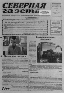СЕВЕРНАЯ с 25 октября 2012 года ЧЕТВЕРГ ) №43 (8462) Основана в июне 1935 года V . \ ПОЗДРАВЛЯЕМ! Уважаемые работники и ветераны автомобильного транспорта Северного района! 0(ч всей фуиси &яс с (грг^Ншым? Сегодня нашу повседневную жизнь невозможно представить без четкой, бесперебойной и надежной работы автотранспортных предприятий - на их долю приходится основной объем перевозимых грузов и пассажиров. Напряженный труд специалистов отрасли во многом является залогом эффективной деятельности предприятий, учреждений и организаций Северного района. Примите слова благодарности за ваш ежедневный и добросовестный труд, за выдержку и терпение, верность выбранной профессии. Вам часто приходится работать в сложных условиях. От вашей ответственности, профессионализма зависят жизнь и безопасность людей. От всей души желаем крепкого здоровья, счастья и благополучия, легких дорог, безаварийной, успешной и стабильной работы! Глава Северного района Новосибирской области В.Г.ИВАШКЕВИЧ Председатель Совета депутатов Северного района И.В. ЗВЫКОВ % & Уважаемые ветераны и коллектив ОАОАТП Щ "Северноеагротранс"! щ Поздравляем вас и ваши й | семьи с профессиональным Ж праздником! Ц§ Желаем крепкого здоровья Щ и благополучия! щ Желаем вам всего, чем жизнь Щ богата, Ж В труде успехов, счастья, §Ц долгих лет. | | Пусть вам всегда щ сопутствует удача, Ё ! Пускай не будет в вашей Ж жизни бед! Щ Администрация. 2 Жизнь моя - дорога Поворот за поворотом, километр за километром тянется извилистая дорога, по которой опытный водитель на автобусе везет пассажиров из деревень до райцентра и обратно. В ОАО АПТ "Северноеагротранс" Александр Осипович Халява пришел работать после службы в армии - 37 лет назад. Сначала он работал слесарем, а через три года, получив водительское удостоверение, ему доверили бензовоз, на котором он подменял в случае необходимости других водителей. Вскоре получил новый ГАЗ - 53, затем был ЗИЛ - 131. А.О. Халява исколесил не только родной район, но и соседнюю Томскую область, доставляя на места назначения керосин, горючее. 13 лет назад Александр Осипович стал работать на автобусе. Каждый день он тщательно проверяет техническое состояние автобуса, потому что знает, что он несет ответственность за людей, которые приобрели билеты на поездку, и его транспорт должен быть безопасным для пассажиров. За свой добросовестный и многолетний труд А.О. Халява имеет грамоту Губернатора Новосибирской области, неоднократно на предприятии награждали его Почетными грамотами. Александр Осипович имеет также звание "Герой жатвы - 1983". Квалифицированный специалист ВОАОАТП "Северноеагротранс" трудятся квалифицированные специалисты , один из которых Шич- кин Юрий Николаевич. На предприятие он пришел в 2003 году и принял автобус ПАЗ. Сначала были в рейсы по району и в г. Ба- рабинск, а шесть лет назад ему доверили дальний маршрут Северное - Новосибирск. Теперь он регулярно доставляет северян в областной центр. Профессия водителя автобуса с каждым годом становится все более опасной. Огромная ответственность - отвечать за жизнь пассажиров. Внимательность, наблюдательность, отличная память, выдержка и терпение - далеко не полный перечень умений и навыков водителя - профессионала. - Без чего водить автобус не получится, - рассуждает Юрий Николаевич. - Без терпения, спокойствия и самообладан
