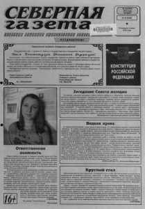 Уважаемые жители Северного района! Поздравляем вас с одним из главных государственных праздников нашей страны - Щ гО т \и ЗСои епш <ро ееийеггв й ф е у е р и луиил! Конституция - это главный документ нашего государства, гарантия основных прав и обязанностей граждан России. В ней заложены прочные основы для защиты интересов страны, формирования правового государства, которое должно служить людям, работать на благополучие каждого человека. Сила любого государства - в людях. Оттого, насколько хорошо мы знаем и соблюдаем законы, во многом зависит не только стабильность и спокойствие в обществе, но и успешное развитие нашей страны. Желаем всем крепкого здоровья, благополучия, уверенности в завтрашнем дне, успехов в делах и всего самого доброго! Глава Северного района Новосибирской области В.Г. ИВАШКЕВИЧ Председатель Совета депутатов Северного района Новосибирской области И.В.ЗВЫКОВ Й Ответственная должность Второе учебное полугодие в Северной средней школе пост Президента школьной республики занимает ученица 11 класса Мишина Татьяна. Когда девушка училась в 10 классе, свободного времени для общественной деятельности было больше, и она решила выдвинуть свою кандидатуру на пост Президента. Написала свою предвыборную программу, благодаря которой получила большинство голосов школьных избирателей. - Я решила выдвинуть свою кандидатуру, потому что хотелось сделать что - то полезное для школы, для ее учеников, - говорит Татьяна .-Та кже хотелось себе лично доказать, что я способна на многое. Президент школьной республики - ответственная должность. Можно с уверенностью сказать, что это - лицо школы. Необходимо постоянно показывать всем достойный пример на личном примере. По словам педагогов, Татьяна Мишина - девушка активная, уравновешенная, тактичная, уважает мнение других людей. Сейчас же школьная жизнь у Татьяны занимает много времени. Выпускной класс, подготовка к экзаменам, факультативы, дополнительные занятия, которые дают большую нагрузку. Но, в будущем, как считает девушка, ей это пригодится. По ее мнению, активная жизнь даст некую устойчивость в различных ответственных ситуациях, быструю адаптацию к большим нагрузкам. А МАТВЕЕВА На снимке: Татьяна Мишина Фото автора Заседание Совета женщин Состоялось выездное заседание Совета женщин района в с. Новотроицк. Вначале женщины посетили отделение милосердия. Заведующий отделением В.Н. Слепцов провел экскурсию, показал все жилые комнаты, столовую и подсобные помещения. Поражает чистота, аккуратность и ухоженность всего здания, невзирая на то, что в нем живут два десятка пожилых людей. Дальнейшая работа женщин проходила в Доме культуры, в котором после ремонта тепло и очень уютно. Были обсуждены вопросы "О роли отца в воспитании детей". "О работе клубов общения женщин поселений", "О практике работы с неполными семьями". Со знанием дела и эмоционально выступили Смык Л.А. - председатель женсовета с. Верх - Красноярка, Ляхнович Л.И. - член президиума Совета женщин района, Панова Н.Н. - председатель женсовета с. Новотроицк. Совет решил продолжить распространение опыта работы по данным направлениям во всех поселениях района. Председатель Совета женщин района Г.Д. БАГРОВА Неделя права В Чувашинской основной школе прошла неделя права. Это мероприятие связано с важной датой - ежегодно 20 ноября отм