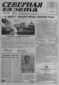 С ПНЕМ ЗвШИТНИКв ОТЕЧЕСТВА! Уважаемые защитники Отечества! От всей души поздравляем вас с наступающим праздником! Этот день по праву является символом отваги, мужества и патриотизма. Он объединяет все поколения граждан нашей страны. Героические страницы отечественной истории, бережно хранят память о ратных подвигах наших отцов и дедов Но и в мирное время служба Родине требует самоотверженности, верности долгу, твердости и целеустремленности характера, всего того, что соответствует званию настоящего мужчины! В этот торжественный день выражаем искреннюю признательность и благодарность дорогим ветеранам Великой Отечественной войны, Вооруженных Сил, всем, кто находится сегодня в боевом строю, надежно оберегает наш покой и мирный труд! Сегодня нам хочется поздравить всех мужчин, рядом с которыми женщины, дети, пожилые люди чувствуют себя спокойнее и увереннее. И пожелать всем нам мира, удачи, энергии и уверенности в завтрашнем дне как для нашей Родины, так и для каждого из нас. С уважением, Глава Северного района Н овосибирской области В. Г. Ивашкевич Председатель Совета депутатов Северного района Н овосибирской области И. В. З вы ко в "Фу-т-ъ■№"■■<тот * V ' <■ч-у Служба в арм ии м но гом у научила В биографии большинства мужчин есть одна общая деталь, отраженная в судьбе. Это служба в армии, которая придает уверенности в себе и терпения в сложных жизненных ситуациях. Прошел армейскую школу воспитания и Иван Юрьевич Новиков, наш земляк, житель с. Северного. Он закончил здесь среднюю школу, в училище получил права водителя, а в Колы- ванском сельскохозяйственном техникуме - профессию юриста. Но первая трудная работа предстояла в Мурманской области в одной из частей сухопутных войск, то есть, в пехоте. И.Ю. Новиков признается, что курс молодого бойца преодолевался сложно: слишком большая разница между гражданс кой жизнью и армейским режимом. Подъемы в шесть часов, учения и просто привыкание к новым условиям посте пенно стали обычной жизнью для солдата из Сибири. Он вместе с сослуживцами изучал устав, выполнял приказы командиров, уверенно водил МТЛБ на котором перебрасывался д е сант, а когда пришла пора прощаться с армией, вернулся в родные края, в село Северное. Здесь Иван Юрьевич обосновался со своей молодой семьей, работает техником и при воспоминании о службе в армии уверенно говорит о том, что она сослужила ему в жизни хорошую службу. О. Ф едорова На снимке: Иван Новиков уважаемые защитники Отечества! Т>орогие ветераны войны! День защитника Отечества - особый праздник для нашей с траны |г ! Во все времена защита Родины, родной земли были тем делом, кото * рое объединяло всех граждан нашей страны в единый и поистине непобедимый народ. Военная служба всегда требовала предельной самоотдачи, мужества, отличной подготовки и высоких нравственных качеств. Именно поэтому в нашей стране этот праздник отмечается так широко и является общенациональным. В этот день мы поздравляем всех, чья судьба связана с армией, кто отдал ей годы жизни и тех, кто только начинает осваивать воин- • скую науку. Этот день стал для нас не только всенародным праздни- 1 ком, но иднем нашей памяти, преклонения перед ратным подвигом многих поколений наших предков. Прежде всего, мы поздравляем с праздником ветеранов Великой Отечественной войны, остановивших нацистскую а