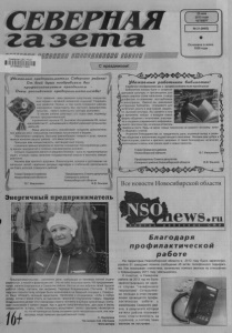 (КОРОТКО О РАЗНОМ) Формирование тридовын отрядов В апреле началась подготовка по формированию молодежного трудового отряда, с целью трудоустройства молодых людей при содействии Новосибирской Городской Общественной О р гани зации "Ш таб новосибирских студенческих отрядов". На данный момент подали заявки 7 человек. Школа - видео На территории Новосибирской области запущен новый проект "Провинция? Центр!", целью которого является развитие самодеятельного творчества молодежи области путем создания видеофильмов, видеороликов, клипов о своем городе, селе; воспитание у молодежи идей патриотизма, гордости за свою малую Родину. В рамках этого проекта состоялся обучающий семинар, в котором приняли участие представители Северного района: Г. Гордеев - индивидуальный предприниматель и В. Фролова - главный библиотекарь централизованной библиотечной системы. Для участников семинара прошли мастер классы от ведущих операторов, сценаристов и режиссеров г. Новосибирска и Новосибирской области. Планы на лето /г I V . На весенне - летний период благоустройства в Чеба- ковской администрации напряженные планы. В Чеба- ках предстоит пробурить две водозаборные скважины, в Витинске огородить парк, кладбище. Также необходимо поменять 100 метров водопроводной сети. Техники для выполнения планов достаточно, но с наличием средств ситуация сложная. Коллектив ЖКХ под руководством А.В. Ликаровского готовит технику к работе. мероприятия ко дню победы Специалисты Гражданцевского Дома культуры совместно со школой подготовили и провели цикл мероприятий, посвященных Дню Победы. Первыми его приход отметили юные чтецы конкурсом "Живое слово". Затем было организовано личное первенство по шашкам, в котором приняли участие жители села всех возрастов. Конкурс чтецов среди старшей возрастной категории школьников, познавательная программа "Та великая война", викторина "Давно закончилась война", вечер для тружеников тыла "Своим трудом ковали вы победу", посещения ветеранов тыла на дому, также явились частью праздничных мероприятий. Кроме того, участники художественной самодеятельности села участвовали в районных мероприятиях "Наследники Победы" и "Гордимся славою героя", где отмечены Дипломами победителей. Добрая традиция Недавно на базе Дома культуры с. Верх - Красноярка прошел сводный концерт под названием "Твори добро". В нем участвовали клубы из с. Большие Кулики, Новони- кольск и Алексеевка. Мероприятие было приурочено к 80-летию Северного района. Открыла его вокальная группа в составе Светланы Зубовой, .Людмилы Сажиной и Валентины Луковой из с. Новоникольск, песней "Играй, гармошка". Культорганизатор из с. Большие Кулики, Тамара Ничкова, исполнила песню "Рапсодия любви". С.А. Клещенко поздравил жителей села, за различные достижения вручил им грамоты. Кристина Кузнецова и Софья Старникова исполнили для них "Песню мамонтенка" . В дальнейшей программе выступили Диана Каюмова из Алексеевки, Коновалова Настя из Больших Куликов. Зубова Светлана спела песню "Я в Сибири живу". В концерте также выступали Надежда Мазалова, Галина Богдановская, Антонина Страникова, Алина Каюмова. творческий специалист Библиотекарь Биазинской библиотеки Любовь Ермо- лаевна Мокроусова проводит большую работу по наглядной информированности читателей по различной темат и ке . П р а к ти ч 