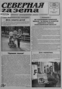 СЕВЕРНАЯ с 30 мая 2013 года ЧЕТВЕРГ №22 (8493) 3 Основана в июне 1935 года с J "Прямая линия" Пенсионная реформа требует большой информационно - разъяснительной работы, которая проводится со всеми слоями населения в режиме обсуждения возникающих вопросов. Недавно состоялась "прямая линия" видеосвязи жителей г. Новосибирска и области с управляющим областным Пенсионным Фондом России, Александром Григорьевичем Терепой. Для ее организации управления ПФР обеспечили участие представителей Союза пенсионеров России, ветеранских, общественных, профсоюзных организаций, средств массовой информации. На вопросы, поступившие в ходе "прямой линии", А.Г. Терепа дал разъясняющие ответы. Один из основных - планируется ли продление Программы государственного софинансирования пенсий? Ответ прозвучал так: стратегия долгосрочного развития пенсионной системы в РФ предусматривает, что после завершения Программы будет рассмотрена возможность ее продления с уточнением условий реализации для отдельных категорий граждан. А.Г. Терепа ответил на вопрос о влиянии продолжительности трудового стажа при начислении трудовой пенсии и ее максимальных размерах по Новосибирской области. Так при определении ее расчетного размера учитывается общий трудовой стаж за периоды деятельности до января 2002 года. Страховой стаж, отработанный после этого периода, на расчетный размер пенсии не влияет, учитываются только страховые взносы в Пенсионный фонд Российской Федерации, которые и влияют существенно на размер пенсии. Что касается понятия максимального и минимального размера пенсий, то оно в законодательстве отсутствует. Но, для примера можно сказать, что один из самых высоких размеров пенсий на сегодняшний день у ветеранов Великой Отечественной войны, в совокупности выплаты составляют более 30 тысяч рублей, а также у тех, кто имел высокую заработную плату за последние 10 лет с соответствующими отчислениями страховых взносов в ПФР. Присутствующие на "прямой линии" в режиме видеосвязи задали А.Г. Терепе вопросы о темпах роста размеров пенсий за последние годы и его реальном влиянии на увеличение пенсий. Далее следовали вопросы: возможно ли возобновить право на пользование набором социальных услуг в случае ухудшения состояния здоровья или усиления группы инвалидности? Могут ли участвовать в Программе государственного софинансирования люди пенсионного возраста? Планируется ли снижение фиксированного размера страховых взносов для индивидуальных предпринимателей? Предусматривается ли новой реформой увеличение пенсионного возраста? Можно ли вместо компенсационной выплаты по уходу за лицом, достигшим возраста 80 лет, увеличить размер пенсии престарелого лица? Как будет начисляться пенсия пенсионерам, не имеющим стажа работы? Были заданы и другие интересующие участников видеозаписи вопросы по Пенсионной реформе, на которые А.Г. Терепа дал исчерпывающие ответы. О. ФЕДОРОВА \~ Награждение 7 ОБ УЧРЕЖДЕНИИ ПАМЯТНОЙ МЕДАЛИ "ЗА ВКЛАа В РАЗВИТИЕ СЕВЕРНОГО РАЙОНА НОВОСИБИРСКОЙ ОБЛАСТИ" В ознаменование 80-летия со дня образования Северного района Новосибирской области постановлением Главы Северного района Новосибирской области от 20.02.2013г. № 12 учреждена памятная медаль "За вклад в развитие Северного района Новосибирской области". Памятной медалью "За вклад в развитие Сев