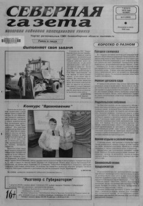 СЕВЕРНАЯ ввввввшш ршВфшшшш вш С1 августа 2013 года ЧЕТВЕРГ ) №31 (8502) Основана в июне 1935 года Ч _______________ у IСевеэная^БС НСО^ 00198663217023 Портал региональных СМИ Новосибирской области nsonews.ru ~ к о р о т к о о р а з н о м ) Район в лицах Выполняет своп задачи В коллективе ОАО "Новоси- бирскавтодор филиал Барабин- ского ДРСУ Северный участок содержания автомобильных дорог", Евгений Владимирович Южанин работает всего несколько месяцев, но уже успел зарекомендовать себя как ответственный работник. За его плечами 19 лет трудового стажа в качестве механизатора в СПК "Верх - Красноярский", так что технику он изучил основательно, и она служит ему исправно, без серьезных поломок. За Евгением закреплен каток, на котором в данный момент он трудится на капитальном ремонте улицы Советской. Евгений Южанин всегда старается качественно и оперативно выполнять свою работу. А. МАТВЕЕВА На снимке: Е.В. Южанин Фото автора Прошел семинар В г. Бердске состоялся семинар для председателей местных общественных организаций Всероссийского общества инвалидов по теме "Проведение мониторинга доступности объектов социальной и иной инфраструктуры для мобильных групп населения". Руководитель экспериментально - консультационного центра "Эврика" г. Санкт - Петербурга Л.Б. Гутман и эксперт по доступной среде для маломобильных групп населения Э.Н. Асылгараева прочитали лекции. А затем, участники семинара приступили к практической части, на которой они применяли полученные знания. По окончанию семинара всем были выданы сертификаты. Ремонт детского сада В Чувашинском детском саду силами персонала был произведен косметический ремонт Фасад здания, крыльцо, комнаты внутри учреждения выкрашены, а вот детская игровая площадка косметического ремонта не требует - все игровые домики, качели, песочницы находятся в хорошем состоянии. Теперь, после небольшого перерыва, девять воспитанников снова могут посещать детское учреждение. V Конкурс " Вдохн В целях воспитания чувства патриотизма к своей малой Родине, в связи с 80- летием со дня образования Северного района отделом культуры, молодежи и спорта администрации был организован районный конкурс чтецов "Вдохновение". Все участники конкурса на суд жюри и зрителей представляли произведения местных авторов. Конкурс проходил по двум возрастным категориям: до 14 лет и от 31 года и старше, в нескольких номинациях: художественная проза, поэзия, авторское творчество. Компетентному жюри было непросто определить победителей. В возрастной группе до 14 лет победителем стал Головачев Данила (Северное), на втором месте Руденко Анна (Северное), третье призовое место получила Попова Анжела (Чебаки). В возрастной группе от 31 года и старше на третьем месте Туболева А.В. (Новотроицк). Второе место заняла Карписонова В.Ю. (Останинка), на первом месте Зырянова Н.В. (Северное). Победители конкурса были награждены памятными подарками и Дипломами победителей. Не остались без внимания и остальные участники конкурса. Они были отмечены памятными подарками и Дипломами за участие в конкурсе чтецов "Вдохновение". А. МАТВЕЕВА На снимке: церемония награждения победителя Головачева Данилы. "Разговор с Губернатором" 1 августа в 20.20 в прямом эфире телеканала ОТС выйдет передача "Разговор с Губернатором" Основные темы для разговора с руководителем региона: “ “ ■""’ “ ■“ “ “ I 