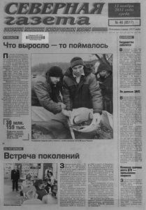 13 ноября 2013 года среда | №46 (8517) | Основана в июне 1935 года С е в е р н а я Ц Б С Н С О В ОБЛАСТИ 0 0 1 9 7 2 6 3 2 1 7 0 2 3 Что выросло — то поймалось По итогам 10 месяцев объемы производства в Новосибирской области выращенной товарной рыбы уже превысили показатели 2012 года. На начало ноября из водоемов региона выловлено порядка 610 тонн такой рыбы, а за весь прошлый год объем вылова составил 601 тонну. Вылов выращенной товарной рыбы таких пород, как пелядь, карп, сазан, белый амур, толстолобик, начался с сентября. Всего в 2013 году рыбоводы планируют произвести около 1200 тонн выращенной товарной рыбы. Напомним, что товарное рыбоводство в отличие от обычного рыболовства предполагает выращивание и разведение в малых прудах и озерах молоди ценных видов рыбы с целью последующего ее вылова и реализации. В регионе действует специальная программа «Государственная поддержка развития товарного рыбоводства в Новосибирской области на 2011- 2013 годы». В ее рамках в весенне-летний период в водоемы выпущено более 30 млн. 159 тыс. штук молоди ценных видов рыб. Было зарыблено более 120 малых и средних озер и прудов. В зарыблении приняли участие около 105 организаций, индивидуальных предпринимателей и крестьянских (фермерских) хозяйств. ВВВЯНН1 Гзо млн. 159 тыс. В весенне-летний период в водоемы области выпущено 30 млн. 159 тыс. штук молоди Разведению товарной рыбы в области - особое внимание. Фото Михаила Пермина С*? 95 ЛЕТ ВЛКСМ Встреча поколений Знаменательную дату — 95 лет со дня, образования ВЛКСМ — 29 октября, как и по всей стране, отметили в Северном районе. Сегодня ни у кого не вызывает сомнений, что комсомол был той организацией, которая не только сплотила юношей и девушек для реализации многих славных дел, но и воспитывала молодых людей в духе преданности Родине, приобщала к труду, спорту, давала путевку в жизнь. Сразу несколько торжественных мероприятий, посвященных юбилею, прошло в эти дни. В историко-краеведческом музее Дома детского творчества организовали встречу комсомольцев разных поколений. На ней присутствовали секретари Северного райкома ВЛКСМ разных лет Г. И. Ивашкевич ( 1950-е годы) и В. И. Лукьянчук (1970-е), комсомоль- Встреча комсомольцев цы 1950-х годов А. Д. Балашова и В. П. Антоненко, почетный житель Северного района А. В. Петро , сегодняшние ученики Северной средней школы. Лекторская группа под руководством С. М. Останиной, директора музея, подготовила познавательный экскурс в историю комсомола. Интересны были и выступления гостей праздника. Много интересного об истории Северной районной организации ВЛКСМ можно было узнать и из тематической выставки, оформленной к этой дате. Один из самых значимых экспонатов выставки — знамя районной комсомольской организации, находящееся на хранении в музее. Об участии молодежи Северного района в областных мероприятиях, посвященных 95-летию ВЛКСМ, читайте на странице 4 Государство заботится В Северном в этом году проведен аукцион на предоставление земельного участка под долевое строительство 8-квартирного жилого дома. Областной бюджет выделил более 8 млн. рублей на приобретение жилья детям-сиротам. Количество детей-сирот и детей, оставшихся без попечения родителей, на 1 октября в районе составляет 84. Под опекой находятся 25 детей, в 16 приемных семьях проживают 29 ребят, в детских домах — 30. Вопрос о жилищном обеспечении данной катего