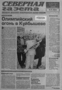 новости С Е В Е Р Н А Я !51,18 декабря 2013 года В ОБЛАСТИ Идет подготовка к Го ссовету Губернатор Новосибирской области Василий Юрченко примет участие в заседании рабочей группы по подготовке Госсовета, на котором будет рассмотрена практическая реализация и меры по исполнению указов Президента РФ от 27 мая 2013 года. В частности, будет рассмотрен ряд вопросов, касающихся сферы жилищно-коммунального хозяйства. Рабочую группу по этой теме возглавляют Василий Юрченко и министр строительства и жилищно-коммунального хозяйства Российской Федерации Михаил Мень. Паспорт юным гражданам В правительстве региона торжественно вручили паспорта 80 юным жителям Новосибирской области. В рамках Всероссийской акции «Я — гражданин России» и празднования 20- летия Конституции страны паспорта школьникам из районов области вручил заместитель губернатора Новосибирской области Виктор Козодой. В торжественной обстановке документы получили школьники, активно участвующие в общественной жизни региона. Ребята уже успели проявить себя в учебе, спорте, творчестве, в деятельности детских общественных объединений, военно-патриотических клубов, школьном самоуправлении, в работе молодежных средств массовой информации. В штатном режиме Новосибирская область — в числе лидеров СФО по готовности муниципальных образований к отопительному сезону. Об этом сообщили в ходе брифинга министр строительства и ЖКХ Новосибирской области Денис Вершинин и и. о. заместителя руководителя Сибирского управления Федеральной службы по экологическому, технологическому и атомному надзору Сергей Шабалин. Как рассказал Денис Вершинин, паспорта готовности получили 25 муниципальных образований области, акты готовности получены еще 6 муниципальными образованиями. Этот показатель один из лучших по Сибири. За безопасные дороги Более 3,5 тысячи километров предстоит преодолеть участникам автопробега по районам Новосибирской области. Старт автопробегу 11 декабря дал министр транспорта и дорожного хозяйства Новосибирской области Сергей Титов. Пробег проводится в целях оценки текущего содержания дорог региона. Также перед участниками стоит задача изучить состояние и транспортную доступность памятников историко-культурного наследия и туристических достопримечательностей в районах области. В Венгеровском районе они посетят комплекс древних археологических памятников, курганов и могильников. В Маслянинс- ком увидят вторую по протяженности на территории Салаирского кряжа Изыли- нскую пещеру. ВМошковском районе автомобилисты смогут побывать на территории Умревинского острога — первого острога на юге Западной Сибири, основанного еще в 1703 году. Также участники автопробега собираются провести мониторинг работы общественного транспорта и транспортной доступности населения региона. Не останется без внимания и организация дорожного движения в муниципальных образованиях НСО. Автопробег продлится до 25 декабря. Пресс-служба губернатора Новосибирской области ТРЕНИНГ Поверь в себя и в свои силы! В Центре занятости населения был проведен тренинг для инвалидов на тему «Поверь в себя и в свои силы». В мероприятии приняли участие семь человек с ограниченными возможностями. Участникам тренинга была оказана психологическая поддержка. Также представитель Центра занятости населен