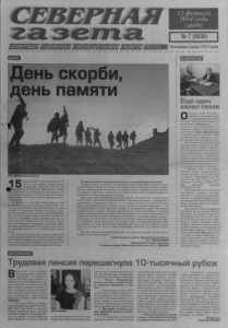 новости №7,12 февраля 2014 года СЕВЕРНАЯ г а з е т РАЙОННАЯ ЕЖЕНЕДЕЛЬНАЯ ГАЗЕТА В ОБЛАСТИ К 70-ЛЕТИЮ ПОБЕДЫ К ИД «Советская Сибирь» присоединились еще 14 газет К медиахолдингу правительства Новосибирской области присоединены редакции 14 газет. Правительство Новосибирской области 28 января одобрило -реорганизацию ИД «Советская Сибирь» путем присоединения к нему еще 14 государственных учреждений. Как пояснила и. о. министра региональной политики Новосибирской области Наталья Колпакова, речь идет об объединении хозяйственной, управленческой и финансовой деятельности газет на базе издательского дома. При этом редакции газет остаются и продолжают свою работу. К издательскому дому «Советская Сибирь» присоединены такие государственные учреждения как: редакции газет «Ведомости Законодательного собрания Новосибирской области», «Мас- лянинский льновод», «Маяк Кулунды», «Чулымская газета», «Убинский вестник», «Трудовая правда», «Искитимская газета», «Ордынская газета», «Аэро- Сити», «Приобская правда», «Бердские новости», «За изобилие», «Степные зори», «Сельский труженик». Реорганизация государственных учреждений Новосибирской области проходит в рамках создания медиахолдинга правительства Новосибирской области. Как пояснил раннее заместитель губернатора Виктор Козодой, цель реорганизации заключается в повышении эффективности работы СМИ, улучшении контента, дизайна изданий. В частности, планируется увеличить тираж газет, качество печати и подготовки материалов. В 2013 году в рамках создания медиахолдинга произошло присоединение областного депутатского канала к дирекции Новосибирской областной телерадиовещательной сети и пяти районных газет («Народная газета», Татарский район, «Знамя труда», Усть-Таркский район, «Кулундинская новь», Чистоозерный район, «Правда Севера», Кыштовский район и «Северная газета», Северный район») к ИД «Советская Сибирь». Пресс-служба губернатора и правительства Новосибирской области От сердца к сердцу Несмотря на то, что в 2014 году будет отмечаться 69-я годовщина Великой Победы над фашизмом, подготовка к празднованию 70-летнего юбилея Победы уже началась. В феврале традиционно проводится месячник военно-патриотической работы, оказания помощи и моральной поддержки, внимания ветеранам Великой Отечественной войны. Сейчас как никогда актуально сохранить живые воспоминания участников тех страшных событий, донести их до будущих поколений. •Специалист отдела культуры, молодежи и спорта администрации Северного района Новосибирской области Наталья Власенко совместно с председателем районной организации ветеранов-пенсио- неров войны, труда, военной службы и правоохранительных органов Северного района Новосибирской области Григорием Федоровичем Киселевым, специалистом по работе с молодежью культурно-досугового центра Надеждой Шаурко в рамках акции «От сердца к сердцу» посетили ветеранов войны Г. К. Иванова, К. В. Пинтусова, Н. С. Головачева, Н. А. Егорова, К. А.- Аксентьева, проживающих в райцентре. Ветераны рассказали о годах войны. В гостях у супругов Аксентьевых своем участии в боевых действиях, о том, заторы акции сделали видеозапись как они встретили День Победы. Эти встречи и планируют к 9 Мая создать ви- воспоминания сейчас бесценны. Органи- деофильм. Бессмертный полк Северного район#^ еверна