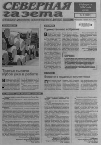 19 февраля 2014 года среда СЕВЕРНАЯ г а з е т а Г № 8 (8531) | ПРОИЗВОДСТВО Третья тысяча кубов уже в работе Фото sddom-group.ru В январе этого года ОАО «Северный лесхоз» заготовил 2077 кубометров леса, из них вывезено на базу лесхоза для дальнейшей переработки 1877 кубометров леса. На выполнении работ за- ствовано три бригады под руководством Н. Н. Клевцова, П. П. Кондрашкина, А. Н. Мамакова. Вывозку леса производили водители С. А. Петров, В. И. Силиник, А. В. Перцев. Также лесхоз занимается обеспечением населения дровами, в том числе имеющего льготы на их получение. Основана в июне 1935 года В ОБЛАСТИ I Северная ЦБС НСО 03794263217023 Торжественное собрание новосибирском театре V « «Глобус» состоялось ш т торжественное собрание, посвященное 25-летию со Дня вывода советских войск из Афганистана. «Афганская война для всех нас является героической страницей великой и нелегкой истории нашей Родины. После Второй мировой войны это были самые многочисленные потери наших Вооруженных сил в военных конфликтах. Светлая память павшим героям, — сказал в приветственном слове заместитель губернатора Новосибирской области Кирилл Колончин. —Слава всем, кто выстоял в сражениях, кто до последнего своего шага по чужой земле остался верен присяге и своей Родине. Ваши патриотизм, воинское братство и товарищеская взаимопомощь служат примером для молодежи. Желаю всем вам, вашим родным здоровья, благополучия и счастья». Участниками торжественного собрания в «Глобусе» стали более 500 человек: ветераны войны в Афганистане, родственники погибших военнослужащих, руководители и члены общественных объединений Новосибирской области, курсанты военно-патриотических клубов, а также представители органов власти. Среди них и трое ветеранов из Северного района ¡ММ СПРАВКА —Александр Иванович Ци- рукин, Александр Иванович Миньков, Владимир Иванович Горбунов. В рамках торжественного собрания состоялась выставка экспонатов афганской войны. Перед воинами-ин- тернационалистами выступили творческие коллективы региона. По материалам пресс-службы губернатора и правительства Новосибирской области В течение 2014 года планируется провести обследование социально-бытовых условий проживания ветеранов боевых действий и членов семей погибших с последующим оказанием социальной помощи нуждающимся, профилактические медицинские осмотры ветеранов войны в Афганистане. Участники локальных войн будут направляться на санаторно-курортное и восстановительно-реабилитационное лечение. В РАЙОНЕ Встречи в трудовых коллективах Продолжаются встречи главы Северного района Владимира Григорьевича Ивашкевича с жителями района. В начале февраля встречи прошли в организациях и учреждениях райцентра: в центральной районной больнице, ОАО «Северный лесхоз», учреждениях образования — детских садах «Улыбка» и «Солнышко», Северной средней школе, отделении полиции «Северное», Барабинском филиале ДРСУ «Северный участок содержания автомобильных дорог» ОАО «Новосибирскавтодор». В. Г. Ивашкевич рассказал о состоянии дел в районе, о планах и перспективах его развития на 2014 год, ответил на вопросы присутствующих на собраниях. 23 ФЕВРАЛЯ - ДЕНЬ ЗАЩИТНИКА ОТЕЧЕСТВА Уважаемые воиныи ветераныВооруженных сил России! Дорогие земляки! Поздравляем вас с праздником —Днем защитника Отечества! С древнейших времен и до наши