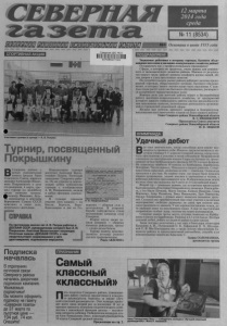 12марта 2014 года среда СЕВЕРНАЯ г а з е т а | №11 (8534)□ СПОРТИВНАЯ АКЦИЯ С е в е р н а я Ц Б С Н С О 0 3 7 9 4 8 6 3 2 1 7 0 2 3 Участники турнира (в центре — А. В. Петров) Турнир, посвященный Покрышкину В Северном районе с целью увековечения памяти трижды Героя Советского Союза, маршала авиации Александра Ивановича Покрышкина в день его рождения, 6 марта, прошел турнир по волейболу « гди мужских команд, ександр Иванович, буду- кандидатом в депутаты Верховного Совета СССР, приезжал в наше село, встречался с жителями. СПРАВКА Инициатором турнира выступил Анатолий Валентинович Петров, Почетный гражданин Северного района. Он же учредил и переходящий кубок победителю турнира с изображением А. И. Покрышкина, медали и кубки призерам соревнования. В турнире приняли участие пять команд — из Биазы, Бергуля, Верх- Красноярки и две из СеНа протяжении многих лет А. В. Петров работал в ДОСААФ СССР, руководителем которого был А. И. Покрышкин. Анатолий Валентинович награжден Почетным знаком «ДОСААФ СССР», о чем свидетельствует сохранившееся у него удостоверение, подписанное маршалом. ВСЕСОЮЗНОЕ ОРДЕНА КРАСНОГО ЗНАМЕНИ ДОБРОВОЛЬНОЕ о б щ е с т в о с о де й с т в и и АРМИИ АВИАЦИИ И ФЛОТУ УДОСТОВЕРЕНИЕ № 24239 ЬЫлаио поя . ШАТРОВУ ___ .Анатолию Валентиновичу р а А д с м НеитрялЬнЫм kojMimcmoN 1 ДдСААФ СССР-. Удостоверение, подписанное А. И. Покрышкиным верного — сборная седа и молодежная. В упорной борьбе победителем стала молодежная команда села Северное. Второе место также заняли северяне — сборная команда райцентра, третье —спортсмены Биазы. Турнир памяти прославленного летчика решено сделать традиционным. Раиса АКИЛИНА Основана в июне 1935 года ПОЗДРАВЛЯЕМ! Уважаемые работники и ветераны торговли, бытового обслуживания населения и жилищно-коммунального хозяйства района! Поздравляем вас с профессиональным праздником! Сферы, в которых вы трудитесь, очень важны для социального и экономического развития района. Именно от результатов вашего труда зависит уровень комфорта жизни людей, облик дворов и улиц населенных пунктов. На потребительском рынке района работают десятки предприятий торговли, общественного питания, бытового обслуживания, в которых занята значительная часть населения. С каждым годом растет качество бытового обслуживания, расширяется ассортимент предоставляемых услуг. Важную роль для жителей района играет и бесперебойная работа жилищно-коммунального хозяйства, от предприятий которого зависит стабильность работы систем жизнеобеспечения населенных пунктов, полноценная деятельность организаций и учреждений социальной сферы. Желаем вам успехов, крепкого здоровья и благополучия, воплощения всех намеченных планов на благо нашего района! Глава Северного района Новосибирской области В. Г. ИВАШКЕВИЧ Председатель Совета депутатов Северного района Новосибирской области И. В. ЗВЫКОВ ОЛИМПИАДА Удачный дебют Все-таки замечательно, когда способные дети имеют возможность проявить себя. Именно такую возможность получили ученики 9-11 классов Северной школы, когда получили приглашение к участию в пятой юбилейной Межрайонной олимпиаде по иностранным языкам Lingua via fortunae est, проходившей на базе Куйбышевского филиала НГПУ в конце февраля. На олимпиаду прибыли 19 команд из Куйбышева, Барабинска, Венгерово, Чистоозерного, Убинского и нашего районов. Соперники очень сер