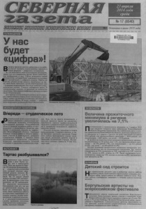 23 апреля 2014 года среда СЕВЕРНАЯ N017 (8540О Основана в июне 1935 года ТЕЛЕВИДЕНИЕ У нас будет «цифра»! В скором времени жители райцентра и сел района смогут смотреть телевизионные передачи в новом формате —цифрового телевидения. Те, кто пользуется многоканальными антеннами, знают, что это совершенно другое, более качественное изображение и звук. Сейчас возводится новый § етранслятор, который будет принимать со спутника Ккет телепрограмм в цифровом режиме. Работы по монтажу ретранслятора должны закончиться до июня, затем будет проходить самый ответственный этап —установка оборудования. Оно будет работать в автоматическом режиме. Сначала планируется прием 20 телевизионных каналов, со временем их количество увеличится. Зона приема цифрового сигнала составит около 30 километров. Для приема телевизионного сигнала на телевизоры старого образца нужны будут специальные приставки, новые плазменные телевизоры уже имеют все необходимые вводы. И самое главное — цифровое многоканальное телевидение будет бесплатным. Возведение нового ретранслятора Северная ЦБС НСО 03795063217023 МОЛОДЕЖНАЯ ПОЛИТИКА В ОБЛАСТИ Впереди — студенческое лето егиональный штаб студенческих отрядов совместно с управлением молодежной политики министерства региональной политики Новосибирской области проводят активную работу по возрождению и дальнейшему развитию движения студенческих отрядов на территории Новосибирской области. Ежегодно молодые люди из районов области принимают участие в деятельности движения студенческих отрядов. С каждым годом увеличивается количество участников, возрастает заинтересованность сельской молодежи к движению студенческих отряФОТОФАКТ дов. Ведь это не просто возможность с пользой провести время на каникулах, приобрести навыки профессиональной трудовой и управленческой деятельности, но и прекрасная возможность заработать неплохие деньги. Отделом культуры, молодежи и спорта администрации Северного района, а также Центром занятости населения Северного района формируются списки молодых людей, желающих принять участие в движении студенческих отрядов. Желающие могут подавать заявки до 15 мая текущего года. Тартас разбушевался? В нынешнем году подъем воды в реке Тартас выше, чем в предыдущие годы. Река уже вышла из берегов. ВСеверном функционирует гидрометеорологический пост, который отмечает ежедневный уровень подъема. Ведется наблюдение и в селе Чуваши. На 18 апреля общий подъем составил 649 сантиметров. За предыдущие сутки вода поднялась на 20 сантиметров. Но опасности подтопления близлежащих улиц нет, так как до критической отметки еще более ста сантиметров. Кроме этого, были проведены работы по подготовке территории к весеннему паводку, силами администрации Северного сельсовета и жилищно-коммунальной службы проверено состояние гидрозащитного сооружения — дамбы, насосных станций. Тартас в разливе Величина прожиточного минимума в регионе увеличилась на 7,1% Постановление о прожиточном минимуме за I квартал 2014 года накануне подписал врио губернатора Новосибирской области Владимир Городецкий. По сообщению пресс-службы правительства Новосибирской области, величина прожиточного минимума за I квартал в расчете на душу населения составила 8316 рублей, для трудоспособного населения — 8850 рублей, для пенсионеров —6681 рубл