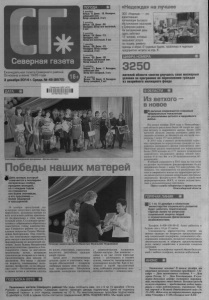 «Надежда» на лучшее Победы наших матерей ООО «Надежда» — это единственная организация бытового обслуживания населения в Северном районе. На сегодняшний день здесь работают 12 человек, которые оказывают услуги по пошиву, ремонту одежды и обуви. О трудовых буднях, проблемах и надеждах предприятия читайте на стр. 5. 3250 жителей области смогли улучшить свои жилищные условия по программе по переселению граждан из аварийного жилищного фонда Участницы конкурсной программы «Дочки-матери» Уважаемые жители Северного района! Мы рады сообщить вам, что с 5 по 15 декабря «Почта России» и редакция газеты «Северная газета» проводят декаду подписчика. Цена на подписку «Северной газеты» в этот период снижена на 10 %. По многочисленным просьбам подписчиков 15 декабря в 13.00 в здании почты состоится традиционный ДЕНЬ ПОДПИСЧИКА. Мы ждем всех! ^День матери, который отмечается в последнее воскресенье ноября, праздник молодой, но с каждым годом он становится все более значимым, а его программа — более обширной и насыщенной. 30 ноября зрительный зал культурно-досугового центра был переполнен, женщины-матери из всех поселений района принимали поздравления с этим замечательным днем. Со словами приветствия к собравшимся обратилась заместитель главы администрации Северного района по социальным вопросам Галина Михайловна Кайгородова. Она отметила, что невозможно переоценить роль матери в воспитании детей, в формировании их жизненной позиции. Затем Галина Михайловна вручила почетные грамоты и благодарности главы за достойное воспитание детей, активную гражданскую позицию и в связи с празднованием Дня матери 25 женщинам. Эти мамы — разные по возрасту, социальному положению, профессии, но их объединяет одно —безграничная любовь к своим детям и желание сделать Почетная грамота вручается Валентине Васильевне Поздняковой их жизнь счастливой, стремление воспитать достойных граждан своей страны. Затем дети — воспитанники детских садов и участники творческих объединений — подарили любимым мамам свои музыкальные поздравления. Завершила праздник конкурсная программа с символическим названием «Дочки-матери». Две команды — мамы и их уже почти взрослые дочки — состязались в знании сказок, ловкости, танцевальном и кулинарном искусстве. Как и положено в такой праздничный день, победили умудренные жизненным опытом —команда мам. ЦИФРА НОМЕРА__________ ______________ * В ОБЛАСТИ * Из ветхого — в новое М В регионе опережаются плановые ™ федеральные показатели по расселению ветхого и аварийного жилья. На конец ноября 2014 года в Новосибирской области расселено более 44 тысяч кв. метров ветхого и аварийного жилья. Более 3250 жителей области смогли улучшить свои жилищные условия, из бюджета на эти цели направлено 1млрд 157 млн рублей. В 2015 году в рамках региональных адресных программ по переселению граждан из аварийного жилищного фонда планируется приобретение жилых помещений для переселения более 2850 человек из 1171 жилого помещения аварийного жилищного фонда общей площадью 41,6 тыс. кв. м в 28 муниципальных образованиях. В общей сложности в 2015 году на эти цели из разных источников финансирования будет направлено более 1 млрд 722 млн рублей. Напомним, что мероприятия по расселению ветхого и аварийного жилья на территории региона реализуются в рамках нескольких программ: программы