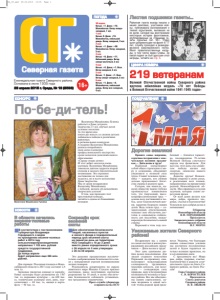 ПОГОДА Северная газета 30 апреля Ночью: +7. Днем: +12. Малооблачно. Ветер северозападный, 7 м/с 1 мая Ночью: 0. Днем: +13. Малооблачно, небольшой дождь. Ветер западный, 2 м/с 2 мая Ночью: +7. Днем: +20. Малооблачно. Ветер западный, 5 м/с 3 мая Ночью: +9. Днем: +11. Небольшой дождь. Ветер северо-восточный, 3 м/с 4 мая Ночью: +2. Днем: +7. Ясно. Ветер северный, 5 м/с 5 мая Ночью: -1. Днем: +7. Ясно. Ветер северо-западный, 5 м/с 6 мая Ночью: +1. Днем: +9. Малооблачно, небольшой дождь. Ветер юго-западный, 4 м/с Листая подшивки газеты... Åæåíåäåëüíàÿ ãàçåòà Ñåâåðíîãî ðàéîíà. Îñíîâàíà â èþíå 1935 ãîäà Районная газета всегда писала о наших земляках, участниках войны, публиковала воспоминания о тяжких испытаниях, выпавших на их долю. Сегодня мы восстановим некоторые истории фронтовиков, опубликованные на страницах газеты прошлых лет. М.Г. Рудко ушел добровольцем на фронт в 17 лет, службу проходил в разведдивизионе кавалерийского полка. Имел правительственные награды, в том числе орден Славы. За какой подвиг он был удостоен этой награды, читайте на стр. 5. 16+ 29 апреля 2015 г. Среда, № 18 (8593) ЦИФРА НОМЕРА 219 ветеранам КОНКУРС ПОЗДРАВЛЕНИЯ Валентина Михайловна Гуляева Великой Отечественной войны Северного района вручена юбилейная медаль «70 лет Победы в Великой Отечественной войне 1941 1945 годов» По-бе-ди-тель! НОВОСТИ Примите самые искренние, сердечные поздравления с заме чательным весенним праздни ком — Днём весны и труда! Первомай олицетворяет собой общее стремление к ми ру и созиданию, объединяет уважением к великой силе труда. Славит человека труже ника — каждого, кто своими делами приумножает богат ства страны и родного края. Сегодня, как никогда, на шему обществу важно глубоко проникнуться пониманием того, что творческий, высо копрофессиональный труд — основа всех достижений и по бед, залог благополучной жиз ни, гарантия будущего наших детей. Ведь только труд — со зидательный, ответственный, поможет нам обеспечить дос таток и социальную стабиль ность для населения, между народную безопасность нашей страны. Первомай в этом году осо бенный — близятся торжест ва, посвященные 70 летию Великой Победы советского народа над фашизмом. Для всех нас этот день стал симво лом победы жизни над смертью, символом нашего могущества. Дорогие друзья! Новоси бирцы уверены в своих силах, в реализации всех планов, направленных на процветание родной Новосибирской об ласти. Мы справимся со всеми задачами, которые ставит пе ред нами время. От всей души желаем вам мира, добра, крепкого здо ровья, счастья и благополучия! Успехов во всех добрых делах и начинаниях! Губернатор Новосибирской области В.Ф. ГОРОДЕЦКИЙ Председатель Законодательного собрания Новосибирской области И.Г. МОРОЗ Валентина Михайловна Гуляева работает в Доме детского творчества 13 лет, обучает детей основам экологии. За это время она много раз вместе со своими детьми добивалась победы в различных районных и региональных конкурсах. А недавно Валентина Михайловна решила попробовать свои силы в конкурсе профессионального мастерства среди педагогов дополнительного образования «Сердце отдаю детям». И этот дебют оказался очень удачным: Валентина Михайловна завоевала диплом лауреата второй степени в эколого биологической номинации. Это огромное достижение не только для педагога, но и всего коллектива Дома творчества. Мы от души поздравляем Вале