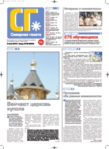 ПОГОДА Северная газета 9 июля Ночью: +8. Днем: +15. Пасмурно, небольшой дождь. Ветер юго-западный, 4 м/с 10 июля Ночью: +10. Днем: +14. Пасмурно, дождь. Ветер восточный, 2 м/с 11 июля Ночью: +9. Днем: +18. Пасмурно. Ветер восточный, 5 м/с 12 июля Ночью: +14. Днем: +21. Облачно, небольшой дождь, гроза. Ветер южный, 4 м/с 13 июля Ночью: +20. Днем: +29. Ясно. Ветер южный, 5 м/с 14 июля Ночью: +23. Днем: +25. Облачно, небольшой дождь, гроза. Ветер юго-западный, 2 м/с 15 июля Ночью: +18. День: +20. Малооблачно. Ветер северо-западный, 5 м/с Интересно и познавательно Åæåíåäåëüíàÿ ãàçåòà Ñåâåðíîãî ðàéîíà. Îñíîâàíà â èþíå 1935 ãîäà Интересной и познава тельной стала для учеников Коб Кордоновской школы экс курсионная поездка в Новоси бирск, ведь многие ребята впервые побывали в столице Сибири. Каждое лето, на про тяжении вот уже пяти лет, об щественный фонд «Служение обществу», учрежденный де путатом Заксобрания Новоси бирской области Ашотом Ра фаеляном, реализует специальную программу для школьников Северного и Куйбы шевского районов по организации экскурсионно развлекательных поездок в Ново сибирск. Об увлекательном путешествии читайте на стр. 4. 16+ 8 июля 2015 г. Среда, № 28 (8603) ЦИФРА НОМЕРА 275 обучающихся 1 8 классов Северной средней школы посещают летний оздоровительный лагерь дневного пребывания. Стоимость питания на одного ребенка составляет 120 рублей в день НОВОСТИ ПОЗДРАВЛЕНИЕ СОБЫТИЕ До конца 2015 года Ново сибирская область полу чит 8 млн. рублей на реа лизацию программы «За равные возможности», со общил министр социаль ного развития Новосиби рской области Сергей Пыхтин. Средства выделя ются в форме гранта Фон дом поддержки детей, на ходящихся в трудной жиз ненной ситуации. Прог рамма направлена на соз дание условий для оказа ния ранней комплексной помощи детям инвалидам и детям с ограниченными возможностями здоровья. В рамках программы в регио не продолжат развиваться служ бы ранней помощи детям с ин валидностью на базе Центра ре абилитации детей и подростков с ограниченными возможностя ми «Олеся» и областного центра социальной помощи семье и де тям «Морской залив». В практи ку работы отделений реабилита ции детей инвалидов и детей с ограниченными возможностями здоровья будут внедрены новые методы диагностики, продол жится деятельность сетевого ре гионального центра ранней по мощи, будет развиваться сеть лекотек. Кроме того, будет соз дана выездная реабилитацион ная площадка для оказания комплексной помощи детям инвалидам в отдаленных райо нах области. На реализацию ме роприятий данной направлен ности Новосибирская область уже получила около 5 млн. руб лей. Как сообщил Сергей Пых тин, семьи, усыновившие детей с инвалидностью или ограни ченными возможностями здо ровья, получат дополнительную поддержку: будут использованы программы психологической поддержки и сопровождения та ких семей, в том числе и с по мощью дистанционной школы «Учимся вместе». Специалисты учреждений социальной защи ты, здравоохранения и образо вания пройдут обучение новым технологиям и методикам в сфе ре ранней диагностики наруше ний в развитии детей. Пресс служба правительства НСО Алёна МАТВЕЕВА 1 июля в Северном состоялось воздвиже ние трех куполов на храм Святой Троицы. Это знаковое событие не только для прихо жан, но и для всех жи телей нашего района. Впервые в почти трех сотлетней истории села воздвигн