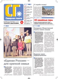 ПОГОДА Северная газета 16 июля Ночью: +15. Днем: +22. Ясно. Ветер северо-западный, 2 м/с 17 июля Ночью: +13. Днем: +25. Ясно. Ветер южный, 2 м/с 18 июля Ночью: +16. Днем: +27. Ясно. Ветер юго-восточный, 4 м/с 19 июля Ночью: +19. Днем: +28. Небольшой дождь. Ветер южный, 4 м/с 20 июля Ночью: +17. Днем: +18. Облачно. Ветер восточный, 4 м/с 21 июля Ночью: +13. Днем: +22. Ясно. Ветер юго-западный, 3 м/с 22 июля Ночью: +18. Днем: +27. Ясно. Ветер западный, 3 м/с К службе готовы! Åæåíåäåëüíàÿ ãàçåòà Ñåâåðíîãî ðàéîíà. Îñíîâàíà â èþíå 1935 ãîäà С 29 июня по 3 июля на базе Биазинской школы интерната проходили учебные сборы с обучающимися допризывного возраста школ Северного района. Организаторы создали все условия для комфортного пребывания допризывников, мероприятие прошло без сбо ев и проблем. Благодаря учас тию в сборах ребята имеют представление о воинской службе, первоначальные тео ретические и практические на выки. О том, как проходили сборы, читайте на стр. 4. 16+ 15 июля 2015 г. Среда, № 29 (8604) ЦИФРА НОМЕРА 43 семейные пары Северного, Новотроицка, Среднеичинска, Чебаков, Гражданцево, Остяцка приняли участие в праздничном мероприятии, посвященном Дню семьи, любви и верности НОВОСТИ ДАТА День семьи, любви и верности не затерял ся в череде других праздничных дат, с каждым годом он ста новится все более по пулярным, приобрета ет общественную зна чимость, формирует свои традиции. Этот праздник, как ни какой другой, способствует возрождению нравственно го отношения к браку, ук реплению семейных устоев, пропаганде крепкой семьи. День памяти святых Петра и Февроньи, покро вителей семьи, отмечается в нашем районе уже несколь ко лет: в этот прекрасный летний день проходила тор жественная регистрация молодоженов, чествование семейных пар юбиляров. С 2012 года вручались памят ные медали «За любовь и верность». Организатором нынешнего праздника выс тупило местное отделение политической партии «Еди ная Россия». И нужно ска зать, что мероприятие полу чилось более масштабным, ярким, насыщенным. И са мое главное, оно привлекло гораздо больше участников. (Продолжение на стр. 4) Заседание Общественной палаты нового созыва В июне число жителей региона, трудоустроен ных через центры заня тости населения, увеличи лось вдвое по сравнению с маем. Количество заяв ленных работодателями вакансий увеличилось почти на четыре тысячи: с 14827 в мае до 18674 в июне, сообщил министр труда, занятости и трудо вых ресурсов Новосиби рской области Игорь Шмидт. При содействии службы за нятости в июне были трудоуст роены 10,2 тысячи человек. Всего с начала года трудоустро ены 34,2 тысячи человек. За первое полугодие 2015 го да проведено около 700 ярмарок вакансий и учебных рабочих мест, на которых побывали 17,4 тысячи человек. Кроме этого к обучению по направлению центров занятости населения профессиям, востребованным на рынке труда, приступили 3,3 тысячи безработных граждан. Также были предоставлены ус луги по профобучению и повы шению квалификации 428 жен щинам с детьми до трех лет, пла нирующим возвращение к тру довой деятельности. Активно привлекались граждане к участию во времен ных и общественных работах, в них были задействованы 9,8 ты сячи человек. Всего с начала 2015 года работодателями реги она было заявлено в центры за нятости населения 87 тысяч ва кансий, в том числе 2,8 тысячи по вновь созданным рабочим местам. Награждение многодетной семьи Андрея Се
