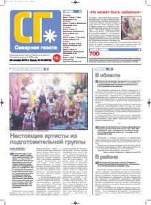 ПОГОДА Северная газета 29 октября Ночью: -3. Днем: -1. Ясно. Ветер южный, 3 м/с 30 октября Ночью: -2. Днем: 0. Малооблачно. Ветер южный, 3 м/с 31 октября Ночью: -5. Днем: -4. Малооблачно, небольшой снег. Ветер западный, 4 м/с 1 ноября Ночью: -4. Днем: -7. Ясно. Ветер северо-западный, 3 м/с 2 ноября Ночью: -10. Днем: -6. Ясно. Ветер юго-западный, 4 м/с 3 ноября Ночью: -6. Днем: -4. Малооблачно, небольшой снег. Ветер южный, 2 м/с 4 ноября Ночью: -2. День: -1. Малооблачно, небольшой снег. Ветер юго-западный, 6 м/с «Не может быть забвенья» Åæåíåäåëüíàÿ ãàçåòà Ñåâåðíîãî ðàéîíà. Îñíîâàíà â èþíå 1935 ãîäà 30 октября — День памяти жертв политичес ких репрессий. В этот день у памятника жерт вам политических репрессий, установленного в парке села Северное, ежегодно собираются люди, опаленные этими страшными годами. В Северном районе было подвергнуто реп рессиям более 600 человек. Из них расстре ляны — 336 человек; осуждены на разные сроки (от 4 до 25 лет) — 120 человек; сосла ны под надзор комендатур — 101; раскулаче ны без ссылки — 62. В последующем все они были реабилитированы. В годы репрессий Северный район был и местом ссылки. Более 200 человек были сосланы в наш район, где находились под присмотром комендатуры. В настоящее время в районе про живают 90 граждан, пострадавших от политических репрессий. Более под робно о страшных годах репрессий в нашем районе читайте на стр. 4. 16+ 28 октября 2015 г. Среда, № 44 (8619) ЦИФРА НОМЕРА 700 лучших представителей студенческой и работающей молодежи, лидеров и активистов общественных молодежных объединений региона стали участниками традиционного молодежного Губернаторского бала, который прошел в Новосибирске 23 октября. ДОШКОЛЬНОЕ ОБРАЗОВАНИЕ Настоящие артисты из подготовительной группы Светлана Зиноятовна Григорьева со своими артистами НОВОСТИ В области Губернатор Владимир Городецкий на аппаратном совещании 26 октября объявил о назначениях и перераспределении полномочий должностных лиц в правительстве региона. Исполняющим обязанности первого заместителя гу бернатора Новосибирской области назначен Юрий Пету хов. Он будет отвечать за формирование решений в сфере государственного строительства и кадровой политики, противодействия коррупции, вести организационно по литические вопросы и др., а также будет возглавлять адми нистрацию губернатора и правительства Новосибирской области. Анатолий Соболев назначен на должность заместителя губернатора Новосибирской области. В круг его ответ ственности будет входить подготовка решений в сфере раз вития инновационной системы Новосибирской области, разработка и реализация госпрограммы реиндустриализа ции экономики региона. Александр Титков назначен заместителем губернатора Новосибирской области, в ведении которого: формирова ние решений в сфере ЖКХ, энергетики, транспорта, до рожного хозяйства и др. *** Конкурс сочинений%эссе учеников общеобразова% тельных организаций региона на тему «Моё НЕТ коррупции!» для учащиеся 10%11 классов прохо% дит в Новосибирской области с 1 октября по 30 ноября 2015 года. Положение о конкурсе размещено на официальных сайтах министерства юстиции Новосибирской области и министерства образования, науки и инновационной поли тики. Департамент информационной политики Новосибирс кой области: Новосибирск, 630011, Красный проспект, 18 тел. 210 29 23, 203 49 66,223 12 73, 218 06 82, факс 222 68 92,pressa@nso.ru, www.nso.ru Пресс слу