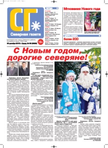 ПОГОДА Северная газета 31 декабря Ночью: -8. Днем: -12. Пасмурно, небольшой снег. Ветер южный, 3 м/с 1 января Ночью: -14. Днем: -17. Пасмурно, небольшой снег. Ветер западный, 4 м/с 2 января Ночью: -22. Днем: -25. Пасмурно. Ветер юго-западный, 3 м/с 3 января Ночью: -27. Днем: -26. Облачно. Ветер восточный, 2 м/с 4 января Ночью: -19. Днем: -10. Малооблачно, небольшой снег. Ветер западный, 4 м/с 5 января Ночью: -16. Днем: -18. Ясно. Ветер юго-западный, 4 м/с 6 января Ночью: -18. День: -16. Ясно. Ветер юго-западный, 2 м/с Åæåíåäåëüíàÿ ãàçåòà Ñåâåðíîãî ðàéîíà. Îñíîâàíà â èþíå 1935 ãîäà 16+ 30 декабря 2015 г. Среда, № 53 (8628) ЦИФРА НОМЕРА более 200 новогодних мероприятий — утренников, представлений, выставок, спектаклей пройдут в учреждениях культуры, образования, социальной защиты района для детей и взрослых в предновогодние дни и в новогодние каникулы. Фотоконкурс «Мгновения Нового го да» вновь вызвал интерес наших чи тателей. Было прислано более 50 фо тографий, на которых запечатлены моменты всеми любимого праздника. В этом году мы распределили их по 4 номинациям: «Лучшая новогодняя компания с Дедом Морозом», «Место встречи — у ёлки», «Мой костюм — самый лучший» и «Ретро фотогра фия». Все авторы накануне Нового года по лучили на память сувениры от редак ции, а лучшие фотографии мы опуб ликуем в первых номерах 2016 года. Еще раз благодарим участников кон курса! Мгновения Нового года Уважаемые жители Новосибирс кой области! Дорогие земляки! Мы провожаем 2015 год, подводим ито ги, вспоминаем яркие события из жизни региона и каждого из нас. Уходящий год был не самым простым: мы столкнулись с вызовами времени, изменениями во внеш ней политике и экономике. Мы хотим поб лагодарить вас за то, что в трудные минуты мы были сплоченными и объединенными ответственностью за судьбу своего Отече ства, за будущее родной Новосибирской области. 2015 год стал временем больших дости жений и трудовых свершений. Мы реализо вали крупные инвестиционные проекты, открыли новые производства, объекты со циальной сферы. Нам удалось сохранить высокие темпы в сфере строительства, ук репить продовольственную безопасность, экономический и оборонный потенциал ре гиона, выполнить все социальные обяза тельства. И в этом, безусловно, большой личный вклад каждого из вас. В 2015 году мы отмечали 70 летие По беды в Великой Отечественной войне. Этот поистине великий праздник объединяет всех гордостью за Отечество, напоминает о героизме и стойкости нашего народа, о подвигах наших отцов, дедов и прадедов, подаривших нам мир и благополучную жизнь. Наш долг — сохранить историчес кую правду о войне, помнить и чтить вете ранов, быть достойными памяти поколения победителей. Дорогие друзья! В наступающем 2016 году нам предстоит решить много новых задач, плодотворно трудиться, чтобы осу ществить намеченное. Убеждены, что вмес те мы преодолеем все сложности, достойно ответим на вызовы времени. У нас впереди — новые дела, новые проекты, которые из менят к лучшему жизнь Новосибирской об ласти. Желаем вам и вашим семьям крепкого здоровья, счастья и благополучия! Пусть Новый год принесет вам больше радости и положительных эмоций. Пусть в каждой семье царят мир, согласие и достаток. Ус пехов вам и исполнения всех желаний! С праздником, дорогие земляки! С Но вым 2016 годом! Губернатор Новосибирской области В.Ф. ГОРОДЕЦКИЙ Председатель Законодательного собрания Ново
