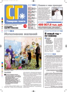 составляет общий объем доходов местного бюджета Северного района на 2016 год. Из них 455 541,1 тыс. рублей — объем безвозмездных поступлений из бюджетов Российской Федерации и Новосибирской области. ПОГОДА Северная газета 14 января Ночью: %10. Днем: %10. Пасмурно, небольшой снег. Ветер западный, 3 м/с 15 января Ночью: %14. Днем: %14. Пасмурно, небольшой снег. Ветер южный, 4 м/с 16 января Ночью: %15. Днем: %12. Малооблачно. Ветер юго%восточный, 6 м/с 17 января Ночью: %11. Днем: %9. Пасмурно, небольшой снег. Ветер южный, 3 м/с 18 января Ночью: %8. Днем: %7. Пасмурно. Ветер юго%западный, 3 м/с 19 января Ночью: %8. Днем: %9. Пасмурно, небольшой снег. Ветер западный, 4 м/с 20 января Ночью: %13. День: %16. Облачно. Ветер северо%западный, 4 м/с ПРАЗДНИК ПОЗДРАВЛЯЕМ! ЗАКОНОДАТЕЛЬНОЕ СОБРАНИЕ Раиса АКИЛИНА Приятным сюрпризом накануне новогодних праздников стала акция «Новогодний подарок», организованная депутатом Законодательного собрания Новосибирской области Юрием Шпаковым. Еще во время предвыборных встреч к Юрию Николаевичу обращались с просьбой помочь приобрести игрушки для дошкольников, организовать праздник для членов общества инвалидов. Эти пожелания были услышаны и исполнены. Светлана Ковган, помощник депутата, от его имени вручила игрушки: куклы, машинки, разви вающие игры, о которых мечтали воспитанники групп дошкольного образования Гражданцевской средней школы в селах Гражданцево и Ударник. Кроме этого, воспитатели дошкольной группы в Ударнике смогут проводить музыкальные занятия с использованием новой магнитолы. Для обучающихся Больше Куликовской школы приятной неожиданностью стало вручение пяти пар лыж. Для граждан с ограниченными возмож ностями здоровья из Останинки был организован новогодний праздник. Также были выделены день ги на проведение новогодней елки для детей и по ощрения победителей конкурса снежных скульп тур в с. Чуваши. Кроме этого, всем детям с ограни ченными возможностями здоровья были вручены новогодние подарки. —Юрий Николаевич всегда внимательно отно сится к просьбам, и просто замечательно, что мы смогли порадовать наших земляков, поздравить их с Новым годом и Рождеством, — сказала Светлана Юрьевна Ковган. В новый год — по-новому Åæåíåäåëüíàÿ ãàçåòà Ñåâåðíîãî ðàéîíà. Îñíîâàíà â èþíå 1935 ãîäà 13 января 2016 г. Среда, №№ 1-2 (8628-8629) Светлана Юрьевна Ковган вручает подарки воспитанникам группы дошкольного образования Гражданцевской средней школы в с. Ударник Сказка к нам приходит У многих жителей райцентра сложилась традиция украшать свои придомовые территории снежными фигурами. Вот и в этом году на улицах Октябрьская, Калинина, Советская, М. Горького и других появились настоящие снежные городки. Инициативу северян поддержало местное отделение партии «Единая Россия», объявив новогоднюю акцию «Снежные фантазии». Победителями признана семья Р.П. и В.Ф. Похлебиных. Второе место завоевали В.П. Ясенков (ул. М. Горького), семьи Кержиных (ул. Октябрьская) и Федяевых (ул. Советская). На третье место вышли О.А.Черношвец (ул. Советская) и семья Акимовых (ул. Октябрьская). Фоторепортаж об акции читайте на стр. 5. Исполнение желаний Вступление в действие с 1 января 2016 года ряда региональных законов отразится на жизни области и новосибирцев. С нового года мы все начинаем жить по при нятому депутатами За конодательного собра ния Закону «Об област ном бюджете Новоси бирс