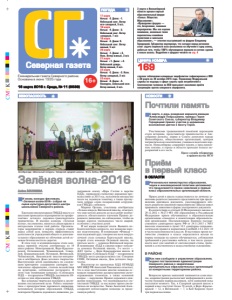 ПОГОДА Северная газета 17 марта Ночью: 2. Днем: 1. Небольшой снег. Ветер юго западный, 9 м/с. 18 марта Ночью: 4. Днем: 2. Небольшой снег. Ветер западный, 7 м/с 19 марта Ночью: 5. Днем: 0. Небольшой снег. Ветер южный, 5 м/с 20 марта Ночью: 1. Днем: +3. Ясно. Ветер южный, 3 м/с 21 марта Ночью: +1. Днем: +2. Небольшой дождь. Ветер южный, 2 м/с. 22 марта Ночью: 5. Днем: 3. Ясно. Ветер западный, 2 м/с 23 марта Ночью: 9. Днем: 4. Пасмурно, небольшой снег. Ветер южный, 3 м/с. БЕЗОПАСНОСТЬ НОВОСТИ Алёна МАТВЕЕВА И вновь конкурс фестиваль «Зеленая волна 2016» собрал на сцене культурно досугового центра школьников Северного района. Ежегодно инспекторами ГИБДД вместе со школами проводятся мероприятия по профи лактике детского дорожно транспортного травматизма. И именно конкурс «Зеленая волна», несомненно, является самым ярким и интересным этапом этой работы. Организа торы мероприятия в первую очередь ставят перед собой цель повысить эффективность деятельности учреждений общего и дополни тельного образования по обучению детей ос новам безопасности на дорогах. В этом году в муниципальном этапе кон курса приняли участие агитбригады из 10 школ района: Новотроицкой, Верх Красноя рской, Останинской, Чувашинской, Север ной, Гражданцевской, Остяцкой, Витинской, Чебаковской, Биазинской школы интерна тав и агитбригада Дома детского творчества. Выступления детей оценивались по следую щим критериям: содержание сценария, му зыкальное оформление, степень воздействия на аудиторию, соблюдение регламента. В этом году номинация конкурса «Соблюдаем ПДД — поздравляем ГИБДД» посвящена 80 летию со дня образования ГИБДД. Все команды творчески подошли к дости жению поставленной цели. Ребята знакоми лись с премудростями дорожного движения, вспоминали историю образования ГИБДД, повторяли Правила дорожного движения, ра зыгрывали сказку «Царь Салтан в царстве ПДД», приводили статистику дорожных про исшествий за 2015 год, исполнили множество песен на заданную тематику, а также прозву чали добрые слова поздравлений сотрудни ков ГИБДД с юбилеем. Марина Орлова, участница агитбригады «Только вперед» Витинской школы, отмечает, что они хотели донести до всех ребят необхо димость обязательного изучения Правил до рожного движения, их соблюдения, чтобы на наших дорогах уменьшалось число аварий, особенно с участием детей. И вот жюри подводит итоги. Выявить по бедителей было непросто, все команды хоро шо подготовлены. В номинации «Фликер — наш надежный друг, говорим мы всем вокруг» лучшей стала команда Бергульской школы, второй стала команда Остяцкой школы, на третьем месте — команда Витинской школы. В номинации «ПДД в странах мира» победи ла команда Остяцкой школы, 2 е место — ДДТ, третье — Верх Красноярская школа. В номинации «Соблюдаем ПДД — поздравляем ГИБДД» места распределились так: Северная СОШ, Остяцкая школа, Дом детского твор чества. Инспектор по пропаганде БДД ОГИБДД МОМВД РФ Анатолий Тимошенко отмечает, что в ходе выступления многие команды ос вещали направление распространения свето отражающих элементов, а также основной вопрос — нарушение Правил дорожного дви жения пешеходами, что подтверждается ста тистикой ГИБДД: за последнее время увели чилось их количество. Также Анатолий Алек сандрович поблагодарил команды за проде ланную работу. Почтили память 6 марта, в день рождения маршала авиации Ал