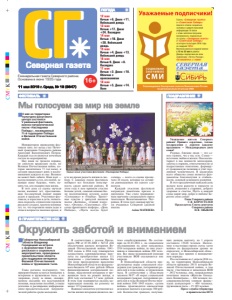 ПОЗДРАВЛЕНИЕ ПОГОДА Северная газета 12 мая Ночью +6. Днем +11. Небольшой дождь 13 мая Ночью +17. Днем +24. Пасмурно 14 мая Ночью +10. Днем +20. Небольшой дождь 15 мая Ночью +4. Днем +13. Небольшой дождь 16 мая Ночью 0. Днем +8. Пасмурно 17 мая Ночью +2. Днем +10. Облачно с прояснениями 18 мая Ночью +5. Днем +14. Ясно ФЕСТИВАЛЬ 4 мая на территории культурно досугового центра состоялся V районный фестиваль военно патриотической песни «Наследники Победы», посвященный 71 й годовщине Победы в Великой Отечественной войне. Инициатором проведения фес тиваля пять лет назад стал Почет ный гражданин Северного района Анатолий Валентинович Петров. Каждый год он является почетным гостем на мероприятии. Над нами не гремели взрывы, не свистели вражеские пули, но Великая Отечественная война, ко торая закончилась 71 год назад, и сегодня продолжает жить в воспо минаниях каждого из нас. Великое не может быть забыто. Наш долг — всегда помнить о тех, кто погиб, за щищая наше будущее, чтить па мять тех, кто подарил нам жизнь. В этот день со сцены звучали песни военных лет, прославляю щие бессмертный подвиг наших дедов и прадедов. Участники фес тиваля, и взрослые и дети, попыта лись передать слушателям героизм русского солдата, трагизм военных лет, то, что пережили наши деды и отцы в непростое военное время, и в то же время радость жизни и сво боду. С каждым годом фестиваль набирает все большую популяр ность среди жителей района. В этом году в нем приняли участие больше детей, самыми юными бы ли воспитанники детских садов «Солнышко» и «Улыбка». Трепет ные чувства у зрителей вызвали песни «Катюша», «Синий плато чек», «Огонек», «Смуглянка», «Пе сенка фронтового шофера», «День Победы», «Пусть всегда будет солнце» — всего со сцены прозву чало 28 песен, которые не остави ли равнодушным ни одного слу шателя. Каждый участник фестиваля награжден памятным призом и дипломом. Уже стало традицион ным вручение специального приза Анатолием Валентиновичем Пет ровым. В этом году самовар вручи ли учащимся Северной средней школы. Алёна МАТВЕЕВА Åæåíåäåëüíàÿ ãàçåòà Ñåâåðíîãî ðàéîíà. Îñíîâàíà â èþíå 1935 ãîäà 11 мая 2016 г. Среда, № 19 (8647) CMYK CMYK 16+ Газеты«Северная газета» и «Советская Сибирь» вошли в список социально значимых средств массовой информации. В связи с этим читатели получили возможность подписаться на газеты «Северная газета» и «Советская Сибирь» на второе полугодие 2016 года со скидкой 10%! Воспользоваться скидкой можно с 12 по 22 мая в рамках Декады подписчика во всех отделениях «Почты России». Оставайтесь с нами! Самые юные участники фестиваля «Наследники Победы» Уважаемые жители Северного района! Примите сердечные, теплые поздравления с дорогим каждому праздником — Международным днем семьи! Родные, близкие люди — это са мое главное, что у нас есть. Семья — источник любви и жизни. Она воспи тывает в нас ценности милосердия, заботы о старших, ответственности за подрастающее поколение, формиру ет гражданскую позицию и учит под линной человечности. В масштабах всего общества семья является фун даментом благополучия и стабиль ности, основой успешного развития. В этот праздничный майский день желаем всем радости и гордости за детей, уважения к старшим, доброго здоровья и счастья. Пусть в каждой семье царят мир, добро и любовь! Бе регите свои семьи! Глава Северного района С.В. КОРОСТЕЛЕВ Председатель Совета 