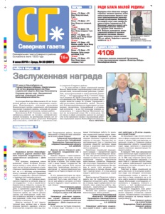 ПОЗДРАВЛЕНИЯ ПОГОДА Северная газета 9 июня Ночью: +16. Днем: +26. Ясно. Ветер восточный, 5 м/с. 10 июня Ночью: +16. Днем: +27. Ясно. Ветер юго-западный, 1 м/с 11 июня Ночью: +16. Днем:+28. Ясно. Ветер западный, 1 м/с 12 июня Ночью: +19. Днем: +23. Дождь, гроза. Ветер северовосточный, 5 м/с 13 июня Ночью: +18. Днем: +20. Облачно, дождь, гроза. Ветер северо-восточный, 3 м/с 14 июня Ночью: +16. Днем: +19. Пасмурно. Ветер северовосточный, 5 м/с 15 июня Ночью: +16. Днем: +23. Ясно. Ветер северозападный, 3 м/с РАЙОН В ЛИЦАХ Åæåíåäåëüíàÿ ãàçåòà Ñåâåðíîãî ðàéîíà. Îñíîâàíà â èþíå 1935 ãîäà 8 июня 2016 г. Среда, № 23 (8651) ЦИФРА НОМЕРА 4109 CMYK CMYK заброшенных воинских захоронений благоустроено в этом году волонтерским корпусом «Волонтеры Победы» Новосибирской области. 16+ РАДИ БЛАГА МАЛОЙ РОДИНЫ Подведены итоги областного конкурса социально значимых проектов, выполняемых физическими лицами и социально ориентированными некоммерческими организациями. Победителями конкурса стали: совет женщин Северного района (председатель Н.М. Иванченко), директор и педагог-организатор Дома детского творчества Л.Г. Чуварина и О.И. Ляхнович и М.Н. Петухова, руководитель центра социальной активности населения Биазинского поселения «Альянс». Сумма полученных грантов составит 294 тыс. рублей. Подробнее о проектах читайте на стр. 4. 31 июня в Новосибирске на торжественном собрании, приуроченном к 25 летию формирования системы социальной защиты, Виктору Николаевичу Слепцову вручен знак «Заслуженный работник социальной защиты Новосибирской области». За плечами Виктора Николаевича 20 лет безуп речной работы в должности заведующего отделе нием Новотроицкого отделения милосердия Комплексного центра социального обслуживания населения Северного района, который он органи зовал, сформировал коллектив, наладил работу. Деятельность В.Н. Слепцова никогда не огра ничивалась работой, он человек с активной жиз ненной позицией, на протяжении многих лет из бирался депутатом Совета депутатов Новотроиц кого сельсовета, в 2010 2015 гг. — депутатом Сове та депутатов Северного района. — За годы работы в сфере социальной защиты Виктор Николаевич зарекомендовал себя как доб росовестный, исполнительный работник, грамот ный, целеустремленный и ответственный руково дитель, — так характеризует В.Н. Слепцова дирек тор Северного КСЦОН Елена Крестьянова. — На сегодняшний день Новотроицкое отделение мило сердия является одним из лучших учреждений с круглосуточным пребыванием людей. Чистота, уют, безупречный порядок на территории и в поме щениях, дисциплина, трудолюбивый и отзывчи вый коллектив — и все это благодаря усилиям за вотделением. С 1 апреля Виктор Николаевич вы шел на заслуженный отдых. Но я очень рада, что его вклад в сферу соцзащиты оценен по достоин ству и ему присвоено звание «Заслуженный работ ник социальной защиты Новосибирской области». Раиса АКИЛИНА Заслуженная награда Уважаемые жители Новосибирс кой области, дорогие земляки! При мите искренние поздравления с го сударственным праздником – Днём России. Этот праздник, рожденный новым временем, новой историей России, прочно вошел в нашу жизнь. Он обра щает нас не только к значимым и суще ственным преобразованиям последних лет, но и к богатому историческому опыту, к великой культуре и традициям нашего государства, к ратным победам и трудовым достижениям россиян. День России — это пра