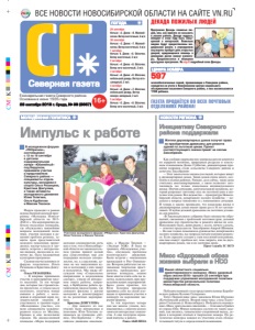 ПОГОДА Северная газета 29 сентября Ночью: +3. Днем: +9. Малооб лачно. Ветер восточный, 4 м/с 30 сентября Ночью: +2. Днем: +7. Малооб лачно. Ветер восточный, 4 м/с 1 октября Ночью: 0. Днем: +6. Облачно. Ветер восточный, 3 м/с 2 октября Ночью: +4. Днем: +8. Облачно. Ветер юго восточный, 3 м/с 3 октября Ночью: +6. Днем: +9. Облачно, небольшой дождь. Ветер юго западный, 2 м/с 4 октября Ночью: +6. Днем: +7. Облачно, небольшой дождь. Ветер северо западный, 3 м/с 5 октября Ночью: +5. День: +8. Облачно. Ветер юго восточный, 2 м/с МОЛОДЁЖНАЯ ПОЛИТИКА Åæåíåäåëüíàÿ ãàçåòà Ñåâåðíîãî ðàéîíà. Îñíîâàíà â èþíå 1935 ãîäà 28 сентября 2016 г. Среда, № 39 (8667) CMYK CMYK 16+ Программа Декады пожилых людей, или, как принято ее называть в нашем районе, Декада мудрых, обещает в этом году быть насыщенной и интересной. Пожилым людям будут предоставлены медицинские услуги; в учреждениях соцзащиты пройдет день открытых дверей; нуждающимся помощь в домашних делах окажут волонтеры. Предполагается и обширная культурная программа. На стр.3 подробный план Декады. ЦИФРА НОМЕРА 597 НОВОСТИ РЕГИОНА малообеспеченных семей, проживающих в Северном районе, находятся на учете в Комплексном центре социального обслуживания населения Северного района, в них воспитываются 1104 ребенка. ДЕКАДА ПОЖИЛЫХ ЛЮДЕЙ ВСЕ НОВОСТИ НОВОСИБИРСКОЙ ОБЛАСТИ НА САЙТЕ VN.RU ГАЗЕТА ПРОДАЁТСЯ ВО ВСЕХ ПОЧТОВЫХ ОТДЕЛЕНИЯХ РАЙОНА! Финал областного социально ориентированного конкурса «Мисс здоровый образ жизни 2016» прошел 22 сентября при поддержке управления молодежной политики министерства региональной политики Новосибирской области. Победительницей стала представительница Бараби нского района Ксения Скляренко. Титул Первой вице мисс завоевала Юлия Юрченко (Коченевский район), Второй вице мисс стала Екате рина Степанова (г. Новосибирск). Победитель номина ции «Мисс зрительских симпатий» — Елизавета Грибач из города Оби. Финал конкурса состоял из таких зада ний, как визитка, танцевально спортивный выход, де филе в вечерних платьях и творческие номера. По ре зультатам конкурса каждая из участниц стала облада тельницей титула в определенной номинации. В молодежном форуме «PROрегион», состоявшемся с 13 по 16 сентября в детском оздоровительном лагере «Юбилейный» под Бердском, принимали участие и представители Северного района — специалисты отдела культуры, молодежи и спорта Ольга Рязанцева, Кристина Довгулева, а также активисты молодежного движения Юлия Телегина, Ольга Курбатова и Максим Тихонов. Форум проходил в рамках ведомственной целевой прог раммы «Молодежь Новоси бирской области на 2013 2020 гг.». На мероприятии ра ботало несколько площадок, где обсуждались важнейшие вопросы молодежной поли тики, участия молодых в ре шении проблем региона, за щиты прав представителей молодого поколения; прово дились мастер классы и тре нинги, встречи с интересны ми людьми, дискуссии и, ко нечно же, была насыщенная культурная программа. Своими впечатлениями от форума поделились Ольга Рязанцева и Кристина Довгу лева. Ольга РЯЗАНЦЕВА: — Я впервые принимала участие в мероприятии тако го масштаба. За эти четыре дня, которые так стремитель но пролетели, я узнала массу полезного, получила новые навыки в работе с моло дежью и огромный заряд по ложительной энергии. Я участвовала в тренинг курсе «Молодежное участие», его вели специалисты междуна родного класса из Москвы, Ерев