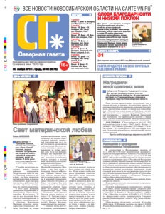 ПОГОДА Северная газета 1 декабря Ночью: 3. Днем: 6. Пасмурно, снег. Ветер южный, 11 м/с. 2 декабря Ночью: 10. Днем: 19. Пасмурно, снег. Ветер юго западный, 6 м/с 3 декабря Ночью: 25. Днем: 22. Ясно. Ветер юго западный, 2 м/с 4 декабря Ночью: 19. Днем: 9. Пасмурно, снег. Ветер юго восточный, 6 м/с 5 декабря Ночью: 5. Днем: 8. Пасмурно, небольшой снег. Ветер западный, 6 м/с 6 декабря Ночью: 13. Днем: 11. Пасмурно, снег. Ветер южный, 6 м/с 7 декабря Ночью: 8. Днем: 11. Облачно, снег. Ветер юго восточный, 4 м/с. ДЕНЬ МАТЕРИ Åæåíåäåëüíàÿ ãàçåòà Ñåâåðíîãî ðàéîíà. Îñíîâàíà â èþíå 1935 ãîäà 30 ноября 2016 г. Среда, № 48 (8676) CMYK CMYK 16+ День урожая — это праздник, на котором собираются работники сельского хозяйства разных профессий: механизаторы, агрономы, животноводы, инженеры, рабочие зернотоков, фермеры и другие. 25 ноября в культурно досуговом центре собрались лучшие труженики района. Итоги года озвучил начальник отдела сельского хозяйства администрации Северного района Иван Геннадьевич Воробьев. Далее прошло награждение лучших тружеников. Все подробности мероприятия на стр. 4. ЦИФРА НОМЕРА 31 НОВОСТИ РЕГИОНА День отделяет нас от нового 2017 года. Обратный отсчёт начался! СЛОВА БЛАГОДАРНОСТИ И НИЗКИЙ ПОКЛОН ВСЕ НОВОСТИ НОВОСИБИРСКОЙ ОБЛАСТИ НА САЙТЕ VN.RU ГАЗЕТА ПРОДАЁТСЯ ВО ВСЕХ ПОЧТОВЫХ ОТДЕЛЕНИЯХ РАЙОНА! Наградили многодетных мам Губернатор Владимир Городецкий в канун Дня матери наградил знаком отличия «За материнскую доблесть» 26 многодетных матерей из 11 муниципальных районов и городских округов Новосибирской области. Глава региона приветствовал многодетных мам и членов их семей и пояснил, что почетным знаком «За материнскую доблесть» выражена особенная благодар ность многодетным семьям от имени всех новосибир цев. «Многодетная семья всегда на Руси была в почете. И сегодня эти семьи остаются опорой общества, осно вой государства», — отметил Владимир Городецкий. Он подчеркнул, что правительство региона и впредь будет уделять особое внимание многодетным семьям, оказывать им разностороннюю помощь и поддержку. ДЛЯ СПРАВКИ. В Новосибирской области 23053 многодетные семьи (в них — 76427 детей). Из них: с 5 детьми — 1207 семей; с 6 детьми — 332 семьи; с 7 и бо лее детьми — 241 семья. Всего с 2008 года знаком отли чия «За материнскую доблесть» награждены 906 много детных матерей. Пресс служба губернатора и правительства НСО Свет материнской любви Раиса АКИЛИНА День матери — праздник особый, потому что у каждого есть мама, самый близкий, родной человек, который как никто другой любит, заботится, помогает, прощает, ведет по жизни. И если у нас есть ангел%хранитель — то это наша мама. 27 ноября в культурно до суговом центре прошло районное мероприятие «Единственной маме на све те». Праздник начинался уже в фойе, где была оформлена выставка рисунков и поделок обучающихся Дома детского творчества, а работники биб лиотеки провели мастер класс по изготовлению кукол. В этот день женщины принимали поздравления от главы района Сергея Влади мировича Коростелева. 28 мам из всех поселений были отмечены благодарностью за достойное воспитание детей. А Светлана Николаевна Марченко отмечена Благо дарностью губернатора об ласти. Эти мамы не только хорошо воспитывают детей, поощряют их занятия обще ственной работой, творчес кой деятельностью, но и са ми участвуют в жизни школы и детского сада. Но очень хо телось бы видеть среди