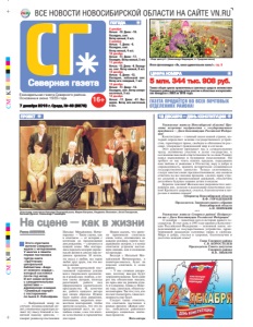 ПОГОДА Северная газета 8 декабря Ночью: -12. Днем: -10. Пасмурно, снег. Ветер южный, 4 м/с. 9 декабря Ночью: -7. Днем: -6. Пасмурно, снег. Ветер южный, 4 м/с 10 декабря Ночью: -17. Днем: -17. Пасмурно. Ветер южный, 5 м/с 11 декабря Ночью: -13. Днем: -8. Пасмурно, снег. Ветер южный, 8 м/с 12 декабря Ночью: -5. Днем: -13. Пасмурно, небольшой снег. Ветер юго-западный, 7 м/с 13 декабря Ночью: -17. Днем: -13. Пасмурно, снег. Ветер северовосточный, 3 м/с 14 декабря Ночью: -17. Днем: -27. Пасмурно. Ветер юго-восточный, 6 м/с. ПРОЕКТ Åæåíåäåëüíàÿ ãàçåòà Ñåâåðíîãî ðàéîíà. Îñíîâàíà â èþíå 1935 ãîäà 7 декабря 2016 г. Среда, № 49 (8678) CMYK CMYK 16+ ЦИФРА НОМЕРА 5 млн. 344 тыс. 908 руб. 12 ДЕКАБРЯ — ДЕНЬ КОНСТИТУЦИИ Такова общая сумма привлеченных грантовых средств активистами Северного района по результатам участия в областных и всероссийских конкурсах с 2003 по 2016 годы. ВСЕ НОВОСТИ НОВОСИБИРСКОЙ ОБЛАСТИ НА САЙТЕ VN.RU ГАЗЕТА ПРОДАЁТСЯ ВО ВСЕХ ПОЧТОВЫХ ОТДЕЛЕНИЯХ РАЙОНА! Раиса АКИЛИНА Этого спектакля жители Северного ждали с нетерпением. У многих в памяти первая постановка театра книги «ПроЧтение» центральной библиотеки «Беда от нежного сердца», который состоялся почти год назад. И вот новая встреча с самодеятельными артистами — деревенская комедия «Семейный портрет с посторонним» по пьесе С. Лобозёрова. — Выбранный жанр не случаен: незамысловатый сю жет, узнаваемые характеры де лают эту пьесу близкой и по нятной нашему зрителю, — говорит режиссер постановки Наталья Михайловна Ничи поренко. — Такие сцены, как в спектакле — от истории с котятами до празднования дня рождения, — случаются в каждой семье. Мы постара лись передать колорит дереве нской жизни в совсем еще не давнем прошлом. И потом, эта пьеса о любви, все герои любят друг друга, так что все как в жизни. За полуторачасовой пос тановкой огромные усилия всего творческого коллекти ва и режиссера: подбор, а по том смена актеров, полгода репетиций, работа над оформлением сценического пространства. И, конечно же, работа каждого актера над своим образом. Нужно было найти свои движения, интонацию, закрепить мно жеством повторений, чтобы зрителю казалось, что это не придуманный жест, не слу чайное слово, а все это впол не естественно и гармонично для героя. Нужно сказать, что зрите ли принимали спектакль очень тепло, откликались на каждую реплику, горячо под держивали актеров, а в конце спектакля устроили настоя щую овацию, как и положено на премьере. Беседуя с Натальей Ми хайловной Ничипоренко, я поинтересовалась, будет ли показан спектакль в селах района. — У нас сложная декора ция, поэтому выезды будут затруднительными. Хотя один раз мы обязательно выедем, но пока еще не решили куда. А в Северном, ближе к Ново му году, спектакль обязатель но повторим. Так что у тех, кто не смог посмотреть, такая воз можность еще будет. Следует также отметить, что спектакль поставлен в рамках проекта «Живая кни га», победителя районного конкурса социально значи мых проектов. Фото автора «Еще цветут!» (Александр Медведев, п. Среднеичинск) Итоги фотоконкурса «Ах, какая удивительная осень!». стр. 8 Уважаемые жители Новосибирской области! При мите искренние поздравления с государственным праздником — Днем Конституции Российской Федера ции! Конституция — главный закон нашей страны, ко торый определяет основы государственного устрой ства, гарантирует права, свободы и обязанности рос сиян, 