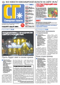 ПОГОДА Северная газета 5 января Ночью:-2. Днем: -12. Пасмурно, небольшой снег. Ветер северо-западный, 4 м/с. 6 января Ночью: -5. Днем: -4. Пасмурно, небольшой снег. Ветер южный, 6 м/с 7 января Ночью: -9. Днем: -14. Малооблачно, небольшой снег. Ветер юго-западный, 7 м/с 8 января Ночью: -15. Днем: -13. Пасмурно, снег. Ветер северный, 3 м/с 9 января Ночью: -18. Днем: -14. Пасмурно, снег. Ветер северный, 7 м/с 10 января Ночью: -12. Днем: -10. Пасмурно. Ветер северный, 3 м/с 11 января Ночью: -13. Днем: -24. Ясно. Ветер юго-западный, 6 м/с. Åæåíåäåëüíàÿ ãàçåòà Ñåâåðíîãî ðàéîíà. Îñíîâàíà â èþíå 1935 ãîäà 4 января 2017 г. Среда, № 1 (8681) 16+ ЦИФРА НОМЕРА 8681 Номер районной газеты вышел со дня ее основания. Мы искренне верим, что в наступившем году читателям будет интересно все, о чем мы рассказываем на страницах «СГ». ВСЕ НОВОСТИ НОВОСИБИРСКОЙ ОБЛАСТИ НА САЙТЕ VN.RU ГАЗЕТА ПРОДАЁТСЯ ВО ВСЕХ ПОЧТОВЫХ ОТДЕЛЕНИЯХ РАЙОНА! 2017 год по китайскому календарю будет годом Огненного Петуха. 2017 год обещает, что непокорный Петух окажет влияние на все знаки зодиака без исключения. Петух — символ Солнца, потому что именно с его утреннего пения начинается день. Китайцы видят в Петухе символы пяти добродетелей: смелости, доброты, верности, достоинства и благожелательности. Именно эти качества нам нужно культивировать в 2017 году. Подробный гороскоп на новый год читатели найдут на стр. 3 Торжественное построение пожарных и аварийно спасательных формирований Новосибирской области прошло 27 декабря в честь Дня спасателя РФ и 26 летия со дня образования МЧС России. Участников построения поздравил заместитель губернатора Сергей Сёмка. «Спасатель — одна из са мых трудных, опасных и от ветственных профессий, тре бующая особых физических и моральных навыков. От имени губернатора Владими ра Городецкого поздравляю вас с Днем спасателя РФ, искренне желаю здоровья, успехов, всегда оставаться на страже, а главное — демон стрировать свои профессио нальные умения только на тренировках», — поздравил участников построения Сер гей Сёмка. Заместитель губернатора вручил спасателям почетные грамоты губернатора, а также сертификаты на два беспи лотных летательных аппара та, 40 мотопомп, оператив ный автомобиль УАЗ, четыре пожарных автоцистерны и другую технику, приобретен ную на средства областного бюджета, которые были вы делены по целевой програм ме «Пожарная безопасность в Новосибирской области на период 2014 2016 годов». В ходе построения состоя лось награждение спасателей, а также вручение других видов спасательной техники и обо рудования. ДУХОВНАЯ ЖИЗНЬ НОВОСТИ РЕГИОНА Многодетный отец из Баганского района Сергей Малакеев стал обладателем всероссийской премии «Папа года 2016», которая ежегодно вручается примерным отцам и организациям страны, реализующим проекты в сфере поддержки отцовства. Торжественное вручение награды состоялось 26 декаб ря в министерстве социаль ного развития НСО. После смерти жены в 2016 году Сергей Малакеев про должает воспитывать пяте рых сыновей, четверо из ко торых — приемные. Все мальчики имеют инвалид ность и ограничения по здо ровью. Также у мужчины есть трое взрослых родных детей, которые помогают ему и поддерживают. «Не каждый отец даже в полной семье способен взять на себя ответственность за судьбу четверых детей с огра ниченными возможностями здоровья, не сдаться в труд ную минуту. Такой человек как С