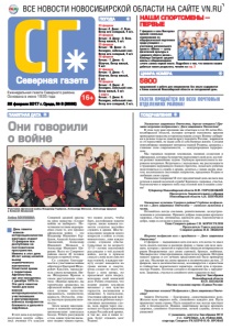 ПОГОДА Северная газета 23 февраля Ночью:-4. Днем: -2. Ясно. Ветер юго-западный, 4 м/с. 24 февраля Ночью: -8. Днем: -4. Ясно. Ветер южный, 5 м/с 25 февраля Ночью: -10. Днем: -3. Пасмурно, небольшой снег. Ветер юго-западный, 4 м/с 26 февраля Ночью: -7. Днем: -5. Облачно. Ветер южный, 5 м/с 27 февраля Ночью: -5. Днем: -1. Облачно. Ветер южный, 6 м/с 28 февраля Ночью: -3. Днем: -2. Пасмурно, небольшой снег. Ветер южный, 5 м/с 1 марта Ночью: -1. Днем: 0. Пасмурно, небольшой снег. Ветер юго-западный, 3 м/с. Åæåíåäåëüíàÿ ãàçåòà Ñåâåðíîãî ðàéîíà. Îñíîâàíà â èþíå 1935 ãîäà 22 февраля 2017 г. Среда, № 8 (8688) 16+ ЦИФРА НОМЕРА 5800 предложений о работе для специалистов без опыта содержится в банке вакансий Новосибирской области на сегодняшний день. ВСЕ НОВОСТИ НОВОСИБИРСКОЙ ОБЛАСТИ НА САЙТЕ VN.RU ГАЗЕТА ПРОДАЁТСЯ ВО ВСЕХ ПОЧТОВЫХ ОТДЕЛЕНИЯХ РАЙОНА! НАШИ СПОРТСМЕНЫ — ПЕРВЫЕ 7 февраля в селе Венгерово прошли зональные соревнования по общефизической подготовке среди учащихся — участников регионального проекта «Школа — центр физической культуры и здорового образа жизни». Команда Северной средней школы в общекомандном зачете заняла первое место. Подробнее о том, что помогло нашим добиться такого результата, читайте на стр. 3 ПАМЯТНАЯ ДАТА Алёна МАТВЕЕВА Дань памяти воинов интернационалистов ежегодно отдают 15 февраля все республики на постсоветском пространстве. Именно в этот день 28 лет назад начался вывод ограниченного контингента Советской армии с территории Афганистана, где они находились с декабря 1979 го. Эта дата памятна также для всех воинов интернационалистов, участвовавших в урегулировании военных конфликтов ближнего и дальнего зарубежья. В этот день в культурно досуговом центре собра лись ученики 6 х классов Северной средней школы на урок мужества «Солдат войны не выбирает». По четными гостями меропри ятия стали те, кто прошел афганскую войну, — это Владимир Иванович Гор бунов, Алексей Алексеевич Закамский, Александр Иванович Меньков и Александр Иванович Ци рукин. Всего из Северного района около 40 человек воевали в горячей точке. Со словами благодар ности к участникам войны обратился Григорий Фёдо рович Киселёв, председа тель совета ветеранов. Ни на Фёдоровна Яровая в своем выступлении отме тила: «Верные присяге, вы героически сражались на афганской войне, проявив свои лучшие качества: преданность, патриотизм, верность Отечеству, отва гу, высокую гражданствен ность». Затем между школьни ками и воинами интерна ционалистами завязалась беседа. Ребята рассуждали о том, какие чувства вызы вает подвиг наших героев, что нужно делать, чтобы быть достойными памяти героев, какие навыки по могли солдатам достойно служить в армии. Шести классники задавали много вопросов о войне и очень внимательно, ловя каждое слово, слушали ответы. Серьезные не по возрасту 12 13—летние школьники рассуждали о той далекой войне, когда в прямом смысле слова пули свистят над головой, и каждую ми нуту солдат находится на грани жизни и смерти, когда солдат не знает, что будет с ним завтра, но продолжает идти вперед, исполняя свой воинский долг. Ребята отметили, что подвиг наших земляков вызывает у них чувство гордости, восхищения и уважения. А напоследок, участники афганской вой ны сказали ребятам напут ственные жизненные сло ва, ведь парни через нес колько лет будут призваны в ряды Российской армии, и так же, как и наши ге ро
