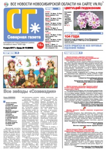 ПОГОДА Северная газета 9 марта Ночью: -13. Днем: -12. Ясно. Ветер северный, 4 м/с. 10 марта Ночью: -18. Днем: -8. Ясно. Ветер западный, 4 м/с 11 марта Ночью: -15. Днем: -6. Ясно. Ветер юго-западный, 5 м/с 12 марта Ночью: -12. Днем: -6. Малооблачно. Ветер южный, 5 м/с 13 марта Ночью: -10. Днем: -4. Ясно. Ветер южный, 1 м/с 14 марта Ночью: -10. Днем: -2. Ясно. Ветер восточный, 3 м/с 15 марта Ночью: -7. Днем: +1. Малооблачно, дождь. Ветер юго-западный, 2 м/с. Åæåíåäåëüíàÿ ãàçåòà Ñåâåðíîãî ðàéîíà. Îñíîâàíà â èþíå 1935 ãîäà 8 марта 2017 г. Среда, № 10 (8690) 16+ ЦИФРА НОМЕРА 104 ГОДА Исполняется со дня празднования в России Международного женского дня 8 Марта. С 1965 года он стал праздничным, нерабочим днем. ВСЕ НОВОСТИ НОВОСИБИРСКОЙ ОБЛАСТИ НА САЙТЕ VN.RU ГАЗЕТА ПРОДАЁТСЯ ВО ВСЕХ ПОЧТОВЫХ ОТДЕЛЕНИЯХ РАЙОНА! ЦВЕТУЩИЙ ПОДОКОННИК ТВОРЧЕСТВО ПОЗДРАВЛЕНИЯ Дорогие женщины, уважаемые жительницы Новосибирской области! От всей души поздравляем вас с Международным женским Днем 8 Марта! Этот праздник напоен теплом и радостью женских улы бок, наполнен красотой и добротой, которую излучают все женщины, девушки, бабушки. Женщинам не только отво дится великая роль и миссия хранительницы семейного очага. Вы активно выступаете с общественно важными инициативами, принимаете участие в работе органов власти, руководите крупными и малыми предприятиями, занимаетесь общественной работой. Поэтому сегодня, поздравляя вас с 8 Марта, мы желаем вам реализации всех задуманных планов, успехов в труде, карьерного и личностного роста. С праздником, дорогие жен щины, мира и добра вам! Губернатор Новосибирской области В.Ф. ГОРОДЕЦКИЙ Председатель Законодательного собрания Новосибирской области А.И. ШИМКИВ Дорогие женщины, жительницы Северного района! От всего сердца поздравляем вас с Международным женским днем 8 Марта! Ваш прекрасный праздник стал настоящим символом вес ны, с которым связаны надежды на лучшие перемены в жиз ни. В это время оживает природа, становятся теплее взаимо отношения людей, зарождаются новые планы и мечты. Пусть в вашей душе всегда будет весна, а счастье, любовь и удача будут вашими верными спутниками! И пусть тепло этого прек расного весеннего праздника согревает ваши сердца, а муж чины исполняют все ваши сокровенные желания! Крепкого здоровья, благополучия, радости вам и вашим близким! Глава Северного района С.В. КОРОСТЕЛЕВ Председатель Совета депутатов Северного района И.В. ЗВЫКОВ Дорогие женщины! Примите искренние поздравления с днем 8 Марта! Женщина бесценна. Она заботливая мать, любящая жена, хранительница семейного очага. Вы несете в наш мир жизнь, любовь и красоту. Так пусть же весна расцве тает в вашей душе, наполняет ее радостью и красотой! И праздник этот оставит множество ярких впечатлений и красивых моментов! Будьте всегда счастливы, дорогие наши, любимые и прекрасные! Депутат Заксобрания Новосибирской области Ю.Н. ШПАКОВ Местное отделение партии «Единая Россия» Дорогие женщины! Примите наши сердечные поздравления с Международным женским днем! Своей любовью, красотой, мудростью и заботой вы, доро гие наши женщины, во все времена вдохновляли мужчин на подвиги и свершения, поддерживали в трудную минуту, помо гали поверить в собственные силы. Именно женщины дают нам жизнь, воспитывают детей, создают тепло и уют в наших семьях, бережно хранят домашний очаг. В этот праздничный день от всей души желаем ва