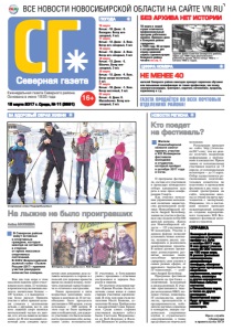 ПОГОДА Северная газета 16 марта Ночью: -10. Днем: -5. Пасмурно. Ветер югозападный, 4 м/с 17 марта Ночью: -12. Днем: -3. Ясно. Ветер юго-западный, 4 м/с 18 марта Ночью: -13. Днем: -3. Ясно. Ветер юго-западный, 4 м/с 19 марта Ночью: -13. Днем: -5. Облачно. Ветер югозападный, 3 м/с 20 марта Ночью: -12. Днем: -4. Ясно. Ветер северо-восточный, 2 м/с 21 марта Ночью: -10. Днем: -1. Ясно. Ветер восточный, 3 м/с 22 марта Ночью: -8. Днем: 0. Малооблачно. Ветер югозападный, 2 м/с Åæåíåäåëüíàÿ ãàçåòà Ñåâåðíîãî ðàéîíà. Îñíîâàíà â èþíå 1935 ãîäà 15 марта 2017 г. Среда, № 11 (8691) 16+ ЦИФРА НОМЕРА НЕ МЕНЕЕ 40 жителей Северного района ежегодно проходят первичное обучение или повышение квалификации по таким профессиям, как повар, электрогазосварщик, тракторист, водитель автомобиля, продавец, парикмахер и т.д. ВСЕ НОВОСТИ НОВОСИБИРСКОЙ ОБЛАСТИ НА САЙТЕ VN.RU ГАЗЕТА ПРОДАЁТСЯ ВО ВСЕХ ПОЧТОВЫХ ОТДЕЛЕНИЯХ РАЙОНА! БЕЗ АРХИВА НЕТ ИСТОРИИ ЗА ЗДОРОВЫЙ ОБРАЗ ЖИЗНИ НОВОСТИ РЕГИОНА Жители Новосибирской области смогут принять участие в XIX Всемирном фестивале молодежи и студентов, который пройдет в октябре 2017 года в Сочи. О программе фестива ля, составе его участников и процедуре конкурсного отбора кандидатов шла речь в ходе пресс конфе ренции 9 марта. Как отметил началь ник управления молодеж ной политики министер ства региональной поли тики Новосибирской об ласти Андрей Безгеймер, заявки на участие в фести вале уже подали почти 600 жителей региона. «Квота для Новосибирской об ласти — 125 участников и 90 волонтеров. Участие в данном форуме позволит установить новые контак ты, наладить диалог, зап ланировать и реализовать международные проекты. В нашем регионе прожи вают разносторонне раз витые молодые люди, способные продемон стрировать свои умения в самых разных сферах, от народного творчества до IT технологий», — сооб щил Андрей Безгеймер. Программа фестиваля разделена на три блока — спортивный, культурный и дискуссионный. К учас тию приглашаются лиде рымолодежных НКО, мо лодые ученые, инженеры, IT специалисты, журна листы, преподаватели и предприниматели, побе дители научных олимпиад и конкурсов, лидеры сту денческих спортивных клубов и студенческого самоуправления, а также представители творческой молодежи. Регистрация проходит на сайте http://www.rus sia2017.com/, там же мож но получить подробную информацию о требова ниях к кандидатам. Прием заявок от потенциальных участников ведется до 15 апреля, от потенциальных волонтеров — до 31 марта. Отбор осуществляется ре гиональным подготови тельным комитетом по подготовке и проведению фестиваля в два этапа: за очный (регистрация на сайте, заполнение анке ты) и очный (встреча пре тендентов с экспертами). Напомним, что в настоя щий момент проходит международный конкурс на создание корпоратив ного талисмана XIX Все мирного фестиваля моло дежи и студентов. Пресс служба губернатора и правительства НСО Алёна МАТВЕЕВА В Северном районе живут активные и спортивные граждане, которые никогда не остаются в стороне от ярких массовых спортивных состязаний. В XXXV Всероссийской лыжной гонке «Лыжня России$2017» приняли участие рекордное количество северян. Еще два года назад в этом массовомлыжном забеге участ вовали всего лишь 32 человека, впрошломгодужелающих ока залось значительно больше — 105 человек, а в нынешнем — уже более двухсот. Принять участие в забеге пришли целы ми семьями с маленькими дет