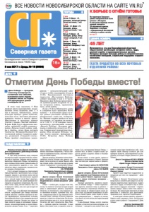ПОГОДА Северная газета Åæåíåäåëüíàÿ ãàçåòà Ñåâåðíîãî ðàéîíà. Îñíîâàíà â èþíå 1935 ãîäà 3 мая 2017 г. Среда, № 18 (8698) 16+ ЦИФРА НОМЕРА 45 ЛЕТ Исполняется в эти дни Новосибирской областной общественной организации ветеранов войны, труда, военной службы и правоохранительных органов. Ветераны проводят большую работу по патриотическому воспитанию молодежи, социальной поддержке старшего поколения. ВСЕ НОВОСТИ НОВОСИБИРСКОЙ ОБЛАСТИ НА САЙТЕ VN.RU ГАЗЕТА ПРОДАЁТСЯ ВО ВСЕХ ПОЧТОВЫХ ОТДЕЛЕНИЯХ РАЙОНА! День Победы — праздник воистину всенародный, и отмечают его семьями, вспоминая своих героев, отдавших жизнь за Родину или вернувшихся домой в победном 45!м. В этом году накануне 9 Мая пройдет много мероприятий, посвя щенных этому великому дню. С 8 мая в школах, библиотеках, домах культуры пройдут уроки мужества, классные часы, выставки рисунков, конкурсы чтецов и многое другое. Школьники и молодежь примут участие в акции «Чистый обелиск». В фойе КДЦ будут оформлены выс тавки: архивной службы админист рации «Горькая память войны: циф ры и факты», музея Дома детского творчества «Ветераны Великой Оте чественной войны Северного райо на», редакцией «Северной газеты». Также пройдут спортивные мероп риятия — легкоатлетический забег (5 мая в 12.00) и велопробег (8 мая в 12.00). Традиционный фестиваль творчества «Наследники Победы» соберет молодежь 5 мая в 15 часов. Накануне Дня Победы представите ли администраций поздравят на до му ветеранов войны, тружеников тыла, детей войны. 9 мая с 9.30 на Монументе славы в Северном будет проходить Вахта памяти — в почетный караул вста нут ребята участники военно пат риотического клуба им. А.Карели на. Митинг памяти пройдет во всех поселениях, в Северном он начнет ся в 11.00. С 11.20 северяне смогут посмотреть праздничный концерт «Краски Победы». Вечерняя прог рамма в райцентре начнется в 20 ча сов. Северян ждет концертная прог рамма «Под звездами Победы», ак ция «Свеча памяти», фейерверк (в 23.00). Встретим День Победы вместе! На территории Северного района пожароопасный сезон начался с 28 апреля. В зоне риска перехода лесных пожаров находятся 10 населенных пунктов. Подробнее о ситуации с пожароопасной обстановкой в области и районе читайте на стр. 2. 4 мая Ночью: 0. Днем: +5. Пасмурно, небольшой дождь. Ветер восточный, 2 м/с 5 мая Ночью: +2. Днем: +4. Пасмурно, дождь. Ветер восточный, 1 м/с 6 мая Ночью: 0. Днем: +4. Пасмурно, дождь. Ветер северо-западный, 4 м/с 7 мая Ночью: -1. Днем: +9. Пасмурно, дождь. Ветер юго-западный, 4 м/с 8 мая Ночью: +5. Днем: +3. Пасмурно, дождь. Ветер западный, 6 м/с 9 мая Ночью: -3. Днем: +3. Пасмурно, дождь. Ветер восточный, 6 м/с 10 мая Ночью: -1. Днем: +7. Пасмурно, дождь. Ветер западный, 5 м/с ДАТА К БОРЬБЕ С ОГНЁМ ГОТОВЫ! Уважаемые ветераны! Дорогие земляки! Сер дечно поздравляем вас с Днём Победы в Великой Отечественной войне! 72 года назад российский народ совершил бессмертный подвиг спасения Отечества, освобо& дил мир от фашизма. Сибиряки внесли неоцени& мый вклад в общее дело Победы, участвовали во всех ключевых битвах самой страшной войны ХХ века, самоотверженно трудились в тылу, чтобы обеспечить фронт снаряжением, продовольстви& ем, оружием и боеприпасами. В этот великий праздник мы преклоняемся перед ветеранами и тружениками тыла, которые подарили мирную и достойную жизнь многим поколениям россиян. Ваш жизненный, трудовой путь и ратный подвиг всегда б