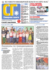 ПОГОДА Северная газета Åæåíåäåëüíàÿ ãàçåòà Ñåâåðíîãî ðàéîíà. Îñíîâàíà â èþíå 1935 ãîäà 21 июня 2017 г. Среда, № 25 (8705) 16+ ЦИФРА НОМЕРА 80 ЖИТЕЛЯМ Северного района уже вручены юбилейные медали «80 лет Новосибирской области» за личный вклад в социально-экономическое развитие региона. ВСЕ НОВОСТИ НОВОСИБИРСКОЙ ОБЛАСТИ НА САЙТЕ VN.RU ГАЗЕТА ПРОДАЁТСЯ ВО ВСЕХ ПОЧТОВЫХ ОТДЕЛЕНИЯХ РАЙОНА! В настоящее время в Северном районе работают 38 молодых педагогов в возрасте до 35 лет. Одна из них — учитель физической культуры Северной средней школы Татьяна Эдуардовна Трибуналова. О первых шагах в профессии и значимых успехах молодого педагога читайте на стр. 5 22 июня Ночью: +16. Днем: +23. Малооблачно, небольшой дождь. Ветер южный, 3 м/с 23 июня Ночью: +14. Днем: +25. Ясно. Ветер западный, 4 м/с 24 июня Ночью: +15. Днем: +27. Ясно. Ветер северовосточный, 2 м/с 25 июня Ночью: +15. Днем: +25. Облачно, небольшой дождь. Ветер северо-восточный, 3 м/с 26 июня Ночью: +18. Днем: +25. Дождь, гроза. Ветер юговосточный, 4 м/с 27 июня Ночью: +17. Днем: +19. Облачно, дождь. Ветер юговосточный, 7 м/с 28 июня Ночью: +15. Днем: +22. Пасмурно, дождь. Ветер югозападный, 5 м/с ЛЕТНИЙ ОТДЫХ ДЕТЕЙ СТАТЬ УЧИТЕЛЕМ В РОДНОЙ ШКОЛЕ ПОЗДРАВЛЕНИЯ Алёна МАТВЕЕВА В этом году в районе распахнули свои двери 13 лагерей дневного пребывания детей, в которых отдохнут 764 человека. Все площадки, кроме Северной средней школы, начали свою рабо ту с 1 июня. 18 дней ребята весело и с пользой проводили время. Для них было организовано множество интересных мероприятий. В летнем лагере на базе Граж данцевской школы отдыхают 33 школьника. Ребята разделены на 2 группы, вожатыми в этом году бы ли четверо студентов, которые на протяжении всей работы лагеря вовлекали детей в подвижные иг ры, конкурсы, познавательные бе седы. Здесь некогда скучать, каж дый день расписан буквально по минутам и имеет свое название. Так, например, день открытия ла геря назывался «День надежд», а еще был «День добрых отноше ний», «День спорта», «День Рос сии, семьи и любви», «День безо пасности», «День флоры и фау ны», «День леса», «Солнечный день» и другие не менее интерес ные, познавательные и увлека тельные дни. Особое внимание уделялось вопросам безопасности. Каждый день проводились беседы о прави лах безопасности на дороге, на во де, в лесу, о правилах поведения при пожаре, в общественных мес тах. Дети узнали о первой медици нской помощи при солнечном ударе, при ушибах, порезах. Большую помощь в организа ции детского отдыха оказали ра ботники сельского Дома культу ры, которые каждый день прово дили различные мероприятия. Я поговорила с ребятами, и вот что они мне рассказали. Ксюша Теплинская, 9 лет: — На площадке очень здорово, можно много играть. Мы каждый день ходим в клуб, спортивный зал. Очень интересно. Вот и вчера ходили в клуб, там играли в спор тивные игры, соревновались меж ду собой. Еще играли в настоль ные игры. И кормят здесь тоже вкусно, дают всегда фрукты. Ксюша Шарепо, 7 лет: — А я первый раз на летней площадке, и, оказывается, здесь очень интересно. Буду каждый год ходить. Жалко только, что так ма ло она длится. Мне интересно ри совать мелками, в классики иг рать, каждое утро делаем зарядку. Больше всего мне нравится играть на улице. Люблю висеть на турни ках. Да здесь вообще все интерес но. И воспитатели, и вожатые у нас хорошие, с ними весело. А вот Данил Петрухин успевает не только играть,