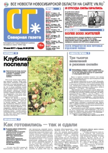 ПОГОДА Северная газета Åæåíåäåëüíàÿ ãàçåòà Ñåâåðíîãî ðàéîíà. Îñíîâàíà â èþíå 1935 ãîäà 19 июля 2017 г. Среда, № 29 (8709) 16+ ЦИФРА НОМЕРА БОЛЕЕ 2000 ЖИТЕЛЕЙ Новосибирской области получили сертификаты на региональный семейный капитал с начала 2017 года. За весь период предоставления данного вида поддержки (с января 2012 года) сертификаты получили почти 22,5 тысячи граждан региона. ВСЕ НОВОСТИ НОВОСИБИРСКОЙ ОБЛАСТИ НА САЙТЕ VN.RU ГАЗЕТА ПРОДАЁТСЯ ВО ВСЕХ ПОЧТОВЫХ ОТДЕЛЕНИЯХ РАЙОНА! В год 80 летнего юбилея Новосибирской области мы продолжаем рассказывать о наших земляках, которые всю жизнь трудились на благо своей малой родины. Анастасия Степановна Лебедева (Суворова) из Биазы в годы ВОВ совсем девчонкой работала на военном заводе в Новосибирске, вытачивала снаряды для «катюш», приближая день Великой Победы. Стр. 5 20 июля Ночью: +11. Днем: +18. Облачно, небольшой дождь. Ветер северный, 3 м/с 21 июля Ночью: +12. Днем: +18. Малооблачно, дождь, гроза. Ветер северный,1 м/с 22 июля Ночью: +12. Днем: +22. Малооблачно, небольшой дождь. Ветер южный, 1 м/с 23 июля Ночью: +16. Днем: +18. Пасмурно, дождь. Ветер юговосточный, 4 м/с 24 июля Ночью: +16. Днем: +19. Дождь, гроза. Ветер юговосточный, 4 м/с 25 июля Ночью: +15. Днем: +20. Облачно, дождь, гроза. Ветер западный, 2 м/с 26 июля Ночью: +16. Днем: +21. Пасмурно, дождь. Ветер западный, 2 м/с ФОТОФАКТ И ОТКУДА СИЛЫ БРАЛИСЬ НОВОСТИ РЕГИОНА В школах района завершилась «страдная пора» — прошла итоговая аттестация. О результатах, которые показали выпускники 2017 года, рассказывает заместитель начальника управления образования администрации Северного района Оксана Николаевна ОСТАНИНА. — В этом году ЕГЭ сдавали 46 выпускников средних школ. Все они преодолели «нижний порог», установленный Рособрнадзором по математике и русскому языку, и по! лучили аттестаты о среднем обра! зовании. Очень порадовали резуль! таты по русскому языку (средний балл выше прошлогоднего на 4,5) и английскому языку — его сдавали выпускники профильного класса, все сдали с высокими баллами. А вот по математике, наоборот, ре! зультаты хуже. Что касается пред! метов, которые ребята сдавали по выбору, то по физике и химии ре! зультаты на уровне 2016 года, по истории, обществознанию — ниже. Подводя итоги ЕГЭ, можно ска! зать, что средние школы района реализовали программу!минимум, а Северная средняя — программу максимум — это когда хотя бы один ученик сдал все экзамены на профильном уровне (если говорить проще — выше среднего). В этом году такой результат показали две выпускницы— Юлия Волохович и Кристина Штырхацкая. — Оксана Николаевна, подтвер дили ли медалисты свои знания? К сожалению, часто случалось, что медалисты сдавали, прямо скажем, на уровне среднего. — Четверо медалисток этого го! да не подвели, они полностью подтвердили свои знания результа! тами экзаменов. Вообще, 16 ребят набрали высокие баллы по 24 предметам. По русскому языку на! ивысший балл — 96 (2 человека), 93 — трое; по математике — 88, 82; по истории — 79, по обществозна! нию — 92 и 80 баллов, по английс! кому языку — 82 балла. Раиса АКИЛИНА (Окончание на стр. 2) Три тысячи заявлений в режиме онлайн Новосибирцы подали 3 тысячи заявлений на регистрацию брака через портал госуслуг, что на 703 заявления больше по сравнению с I полугодием 2016 года. Всего за первую половину текущего года органы ЗАГС Новосибирской области зарегистрировали 8400 актов о заключении брака